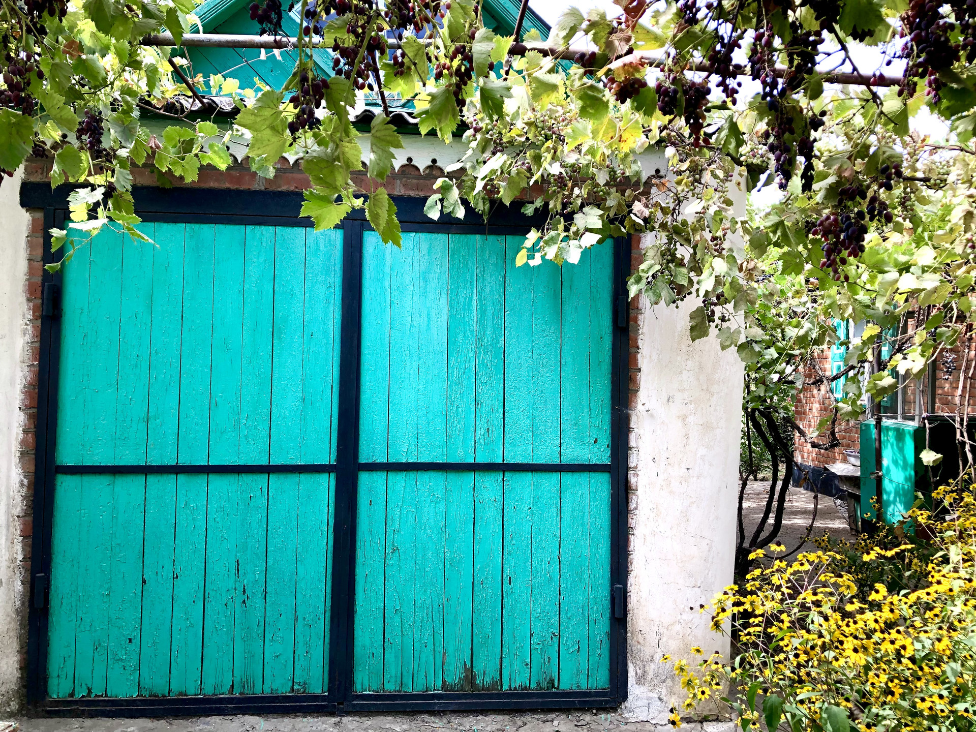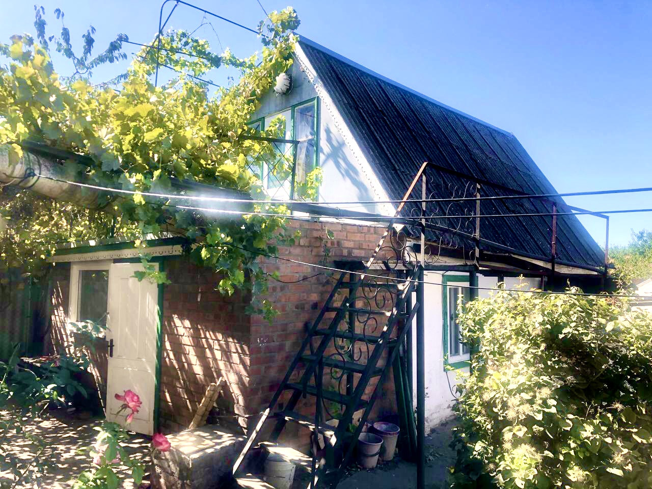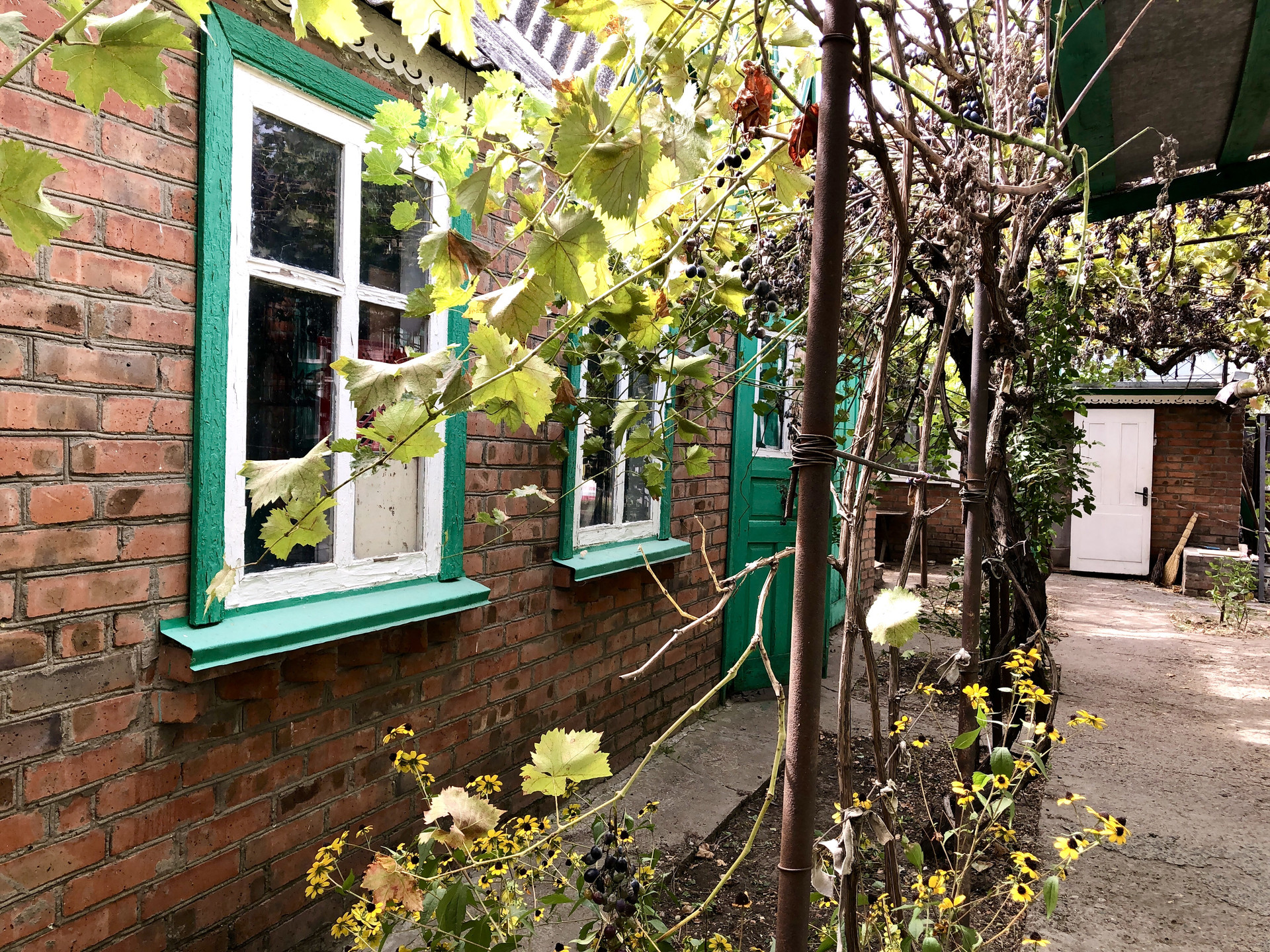 На участке есть плодовые деревья, много винограда, малина, клубника.
