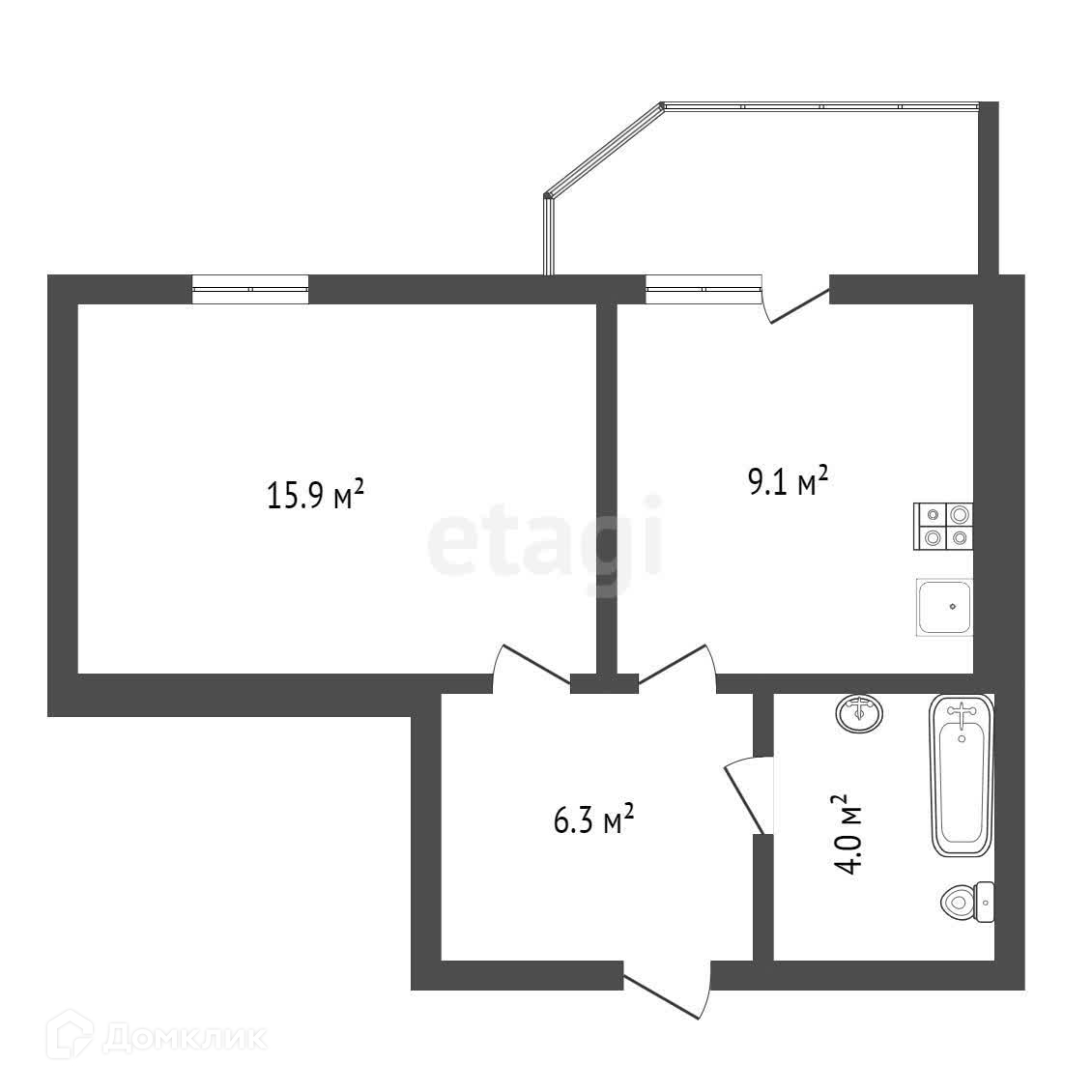 Балкон, лоджия 1 балкон