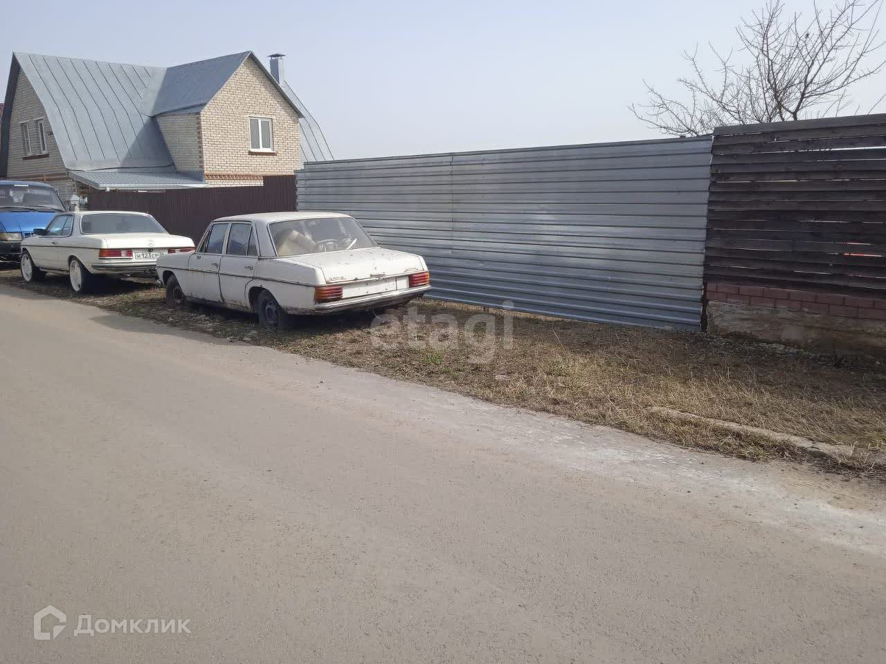 Асфальт рядом с домом.Участок огорожен забором. Посажен сад. В 1 км от участка магазин Метро.