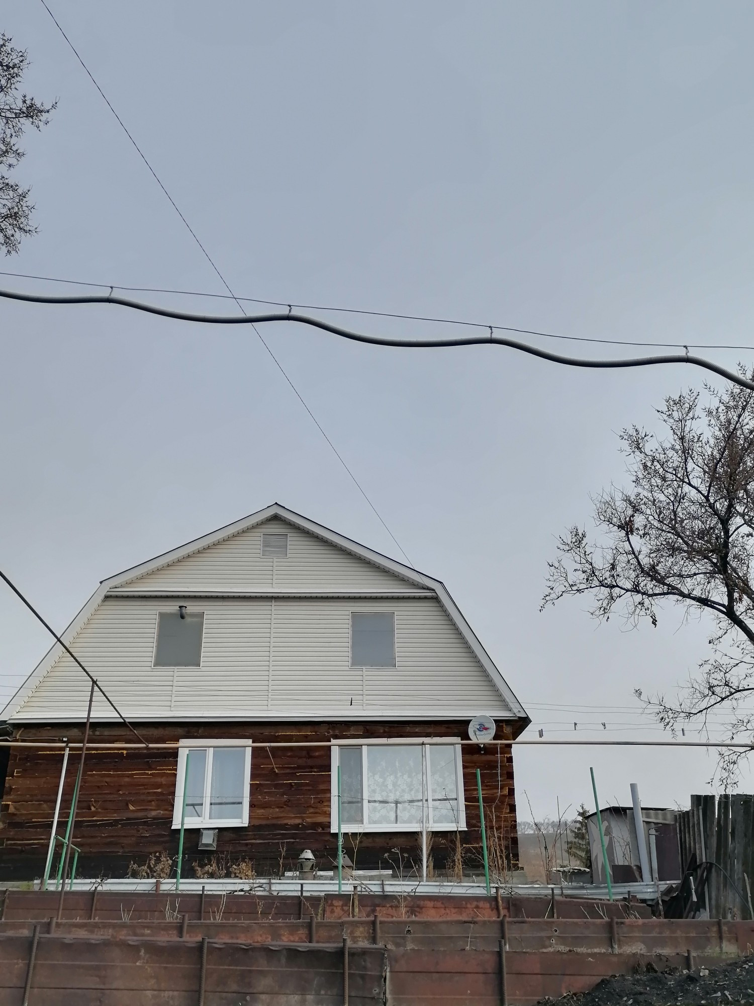 Дом из бруса, крыша мансарда, бетонная плошадка 90 кв. Метров, земельный участок убустроенный, яблони, груши. Подведены газ, вода, эл. Энергия, имеется канализация