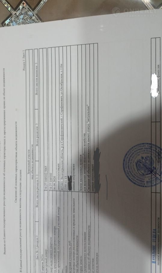 Продается земельный участок, 13 соток к участку подведено водоснабжение, подведена 3х фазная линия электричества,огорожен по периметру.Расположен в центре города Серафимович по ул Октябрьская 116а.Цена 800000т.р. торг