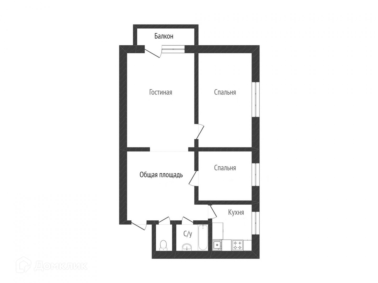 Общая площадь 55 м2