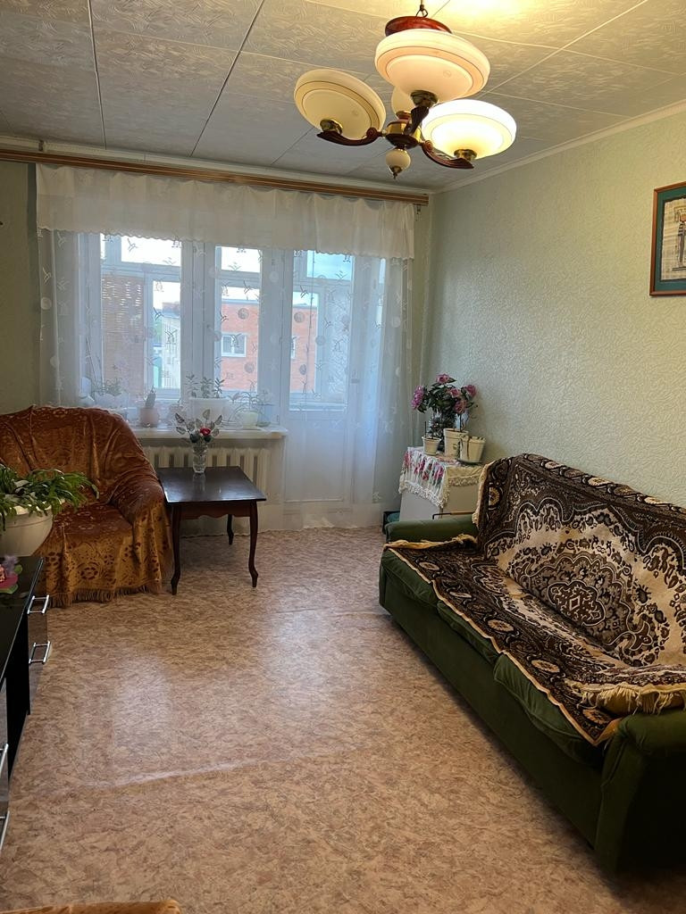 Светлая, тёплая квартира. В самом центре города. Такой дом единственный в городе:) Шаговая доступность к школе, детским садам, магазинам рынкам, спортивный комплекс, бассейн, администрация, банк и другая инфраструктура. Планировка квартиры идеальная! Окна и во двор и на улицу. На кухне окно с секретом - внутри подоконника естественный холодовой шкафот застройщика. Стены нашего кирпичного дома широченные, что позволит на таких же широких подоконниках обустроить лаундж зону. Балкон во двор. Во дворе собственная площадка для игр в футбол, баскетбол, скамейки в тени деревьев для спокойного отдыха. Квартира на идеальном 4 этаже и поэтому не слышно тех, кто воркует на скамейках у подъезда, но и не последний этаж и нет жары от полящего солнца  Летом в квартире прохлада, зимой тепло. Прекрасные интеллигентные соседи воспитатели, учителя, адвокаты). Изначально дом строился и заселялся семьями сотрудников эшелона власти! Квартира никогда не перепродавалась, всегда в этой квартире жила одна наша  семья! Последние 1,5 года в квартире никто не проживает. Требуется косметический ремонт, поэтому торг уместен. Продадим свой родной кров хорошему хозяину