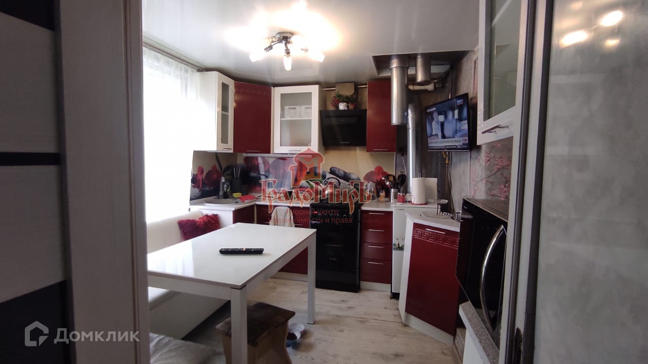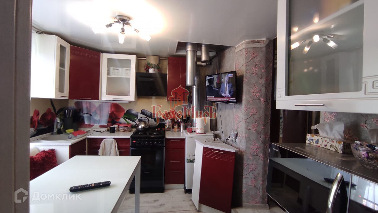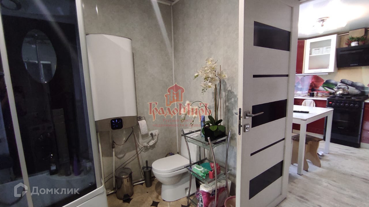 Уютная, хорошо обустроенная кухня имеет выход в большой комфортный санузел с душевой кабиной и стиральной машиной.