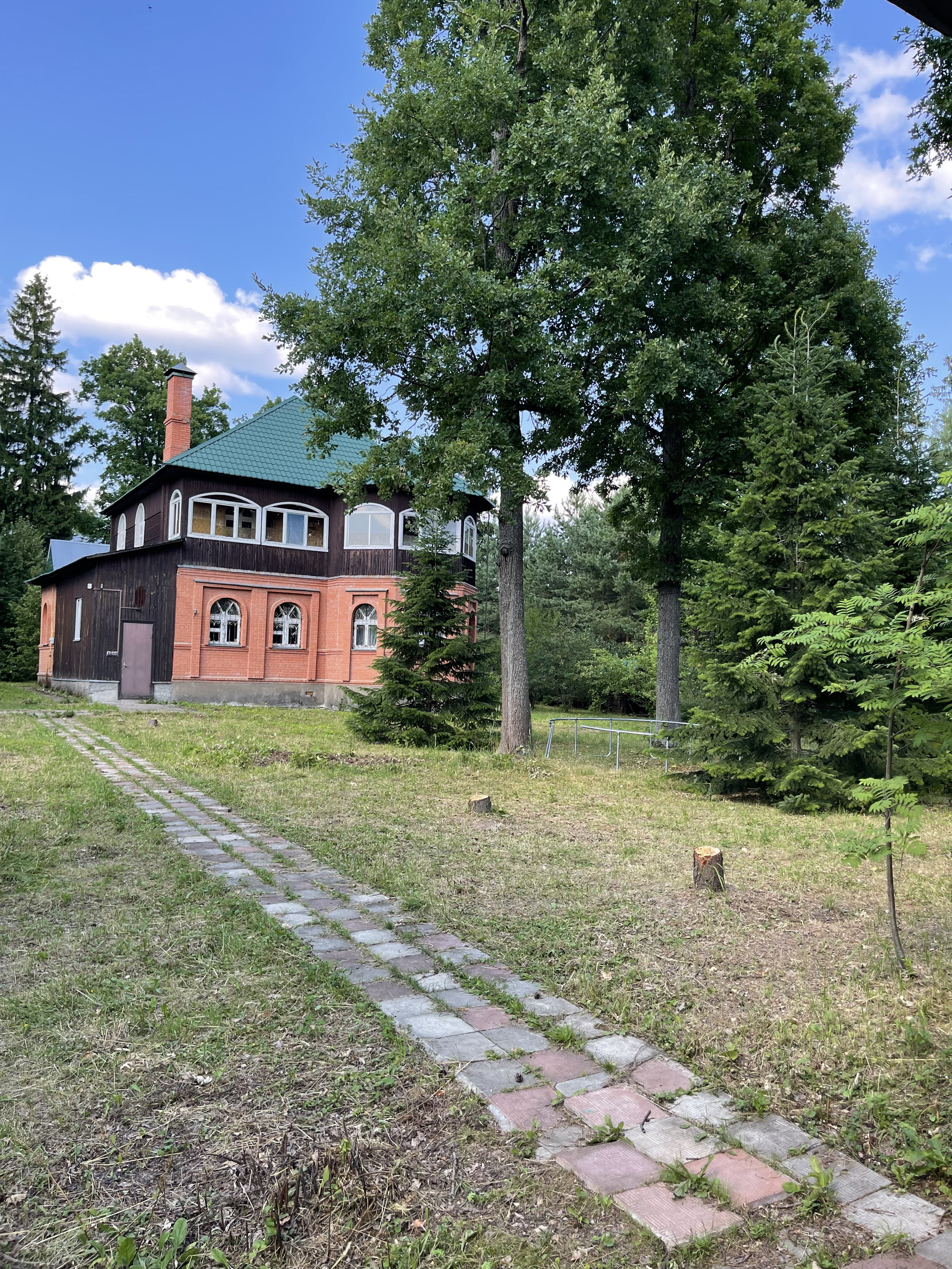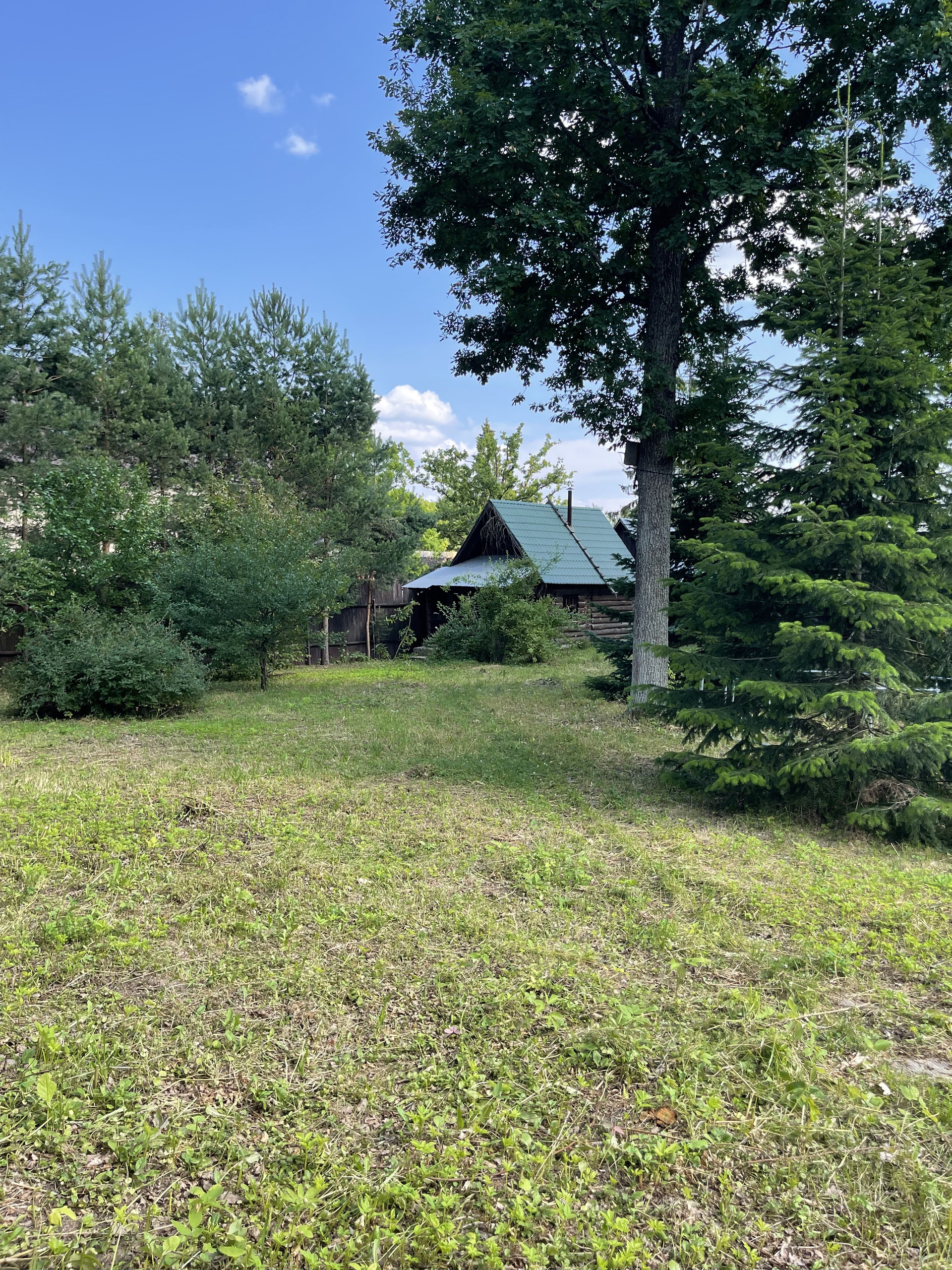 Площадь участка 27 соток. На участке растут вековые дубы, ели, сосны а также садовые деревья (яблони и сливы).