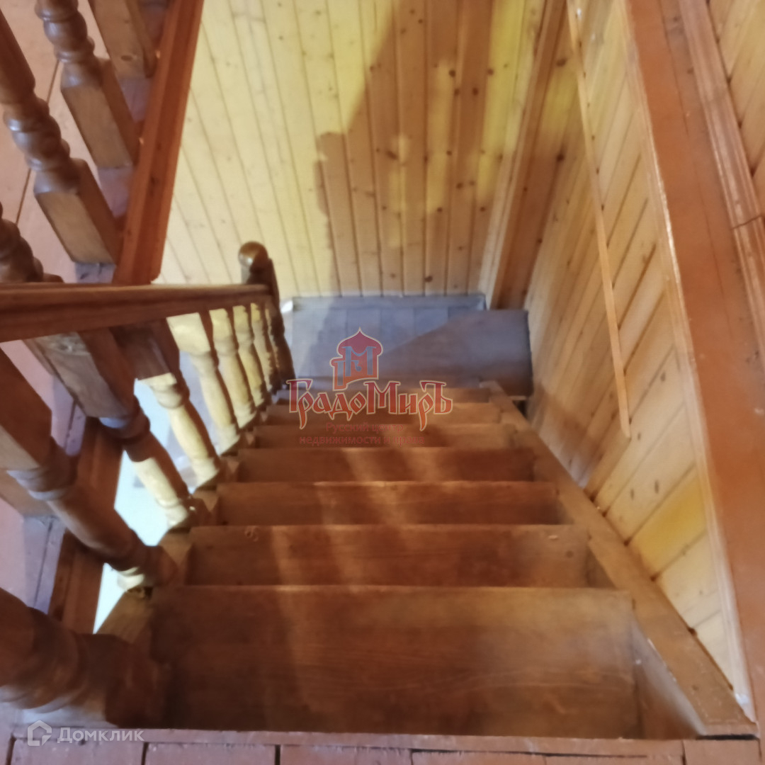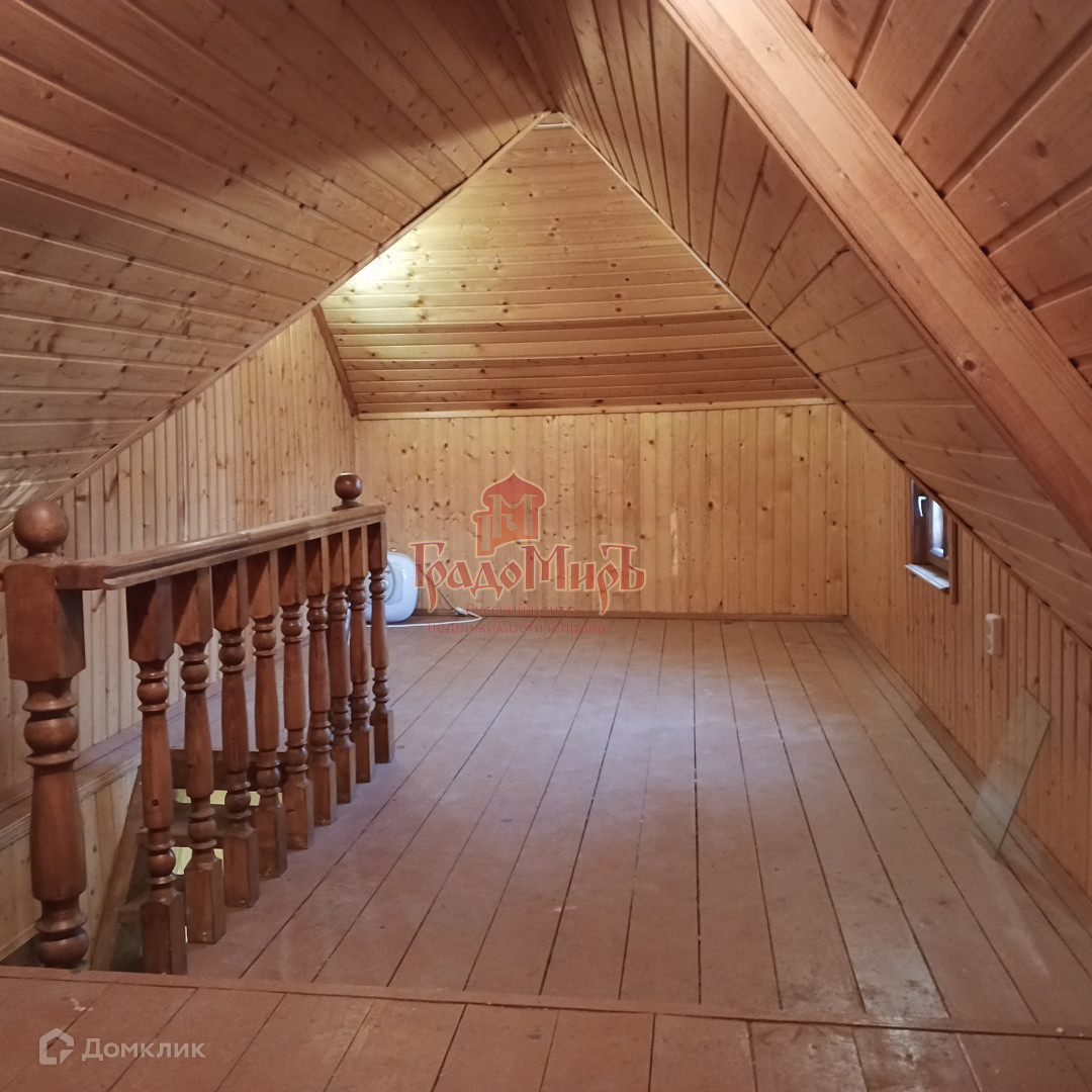 Внутри стены и потолок отделаны вагонкой, покрыты лаком. На первом этаже на пол уложена керамическая плитка, на втором этаже пол деревянный. Удобная межэтажная лестница.