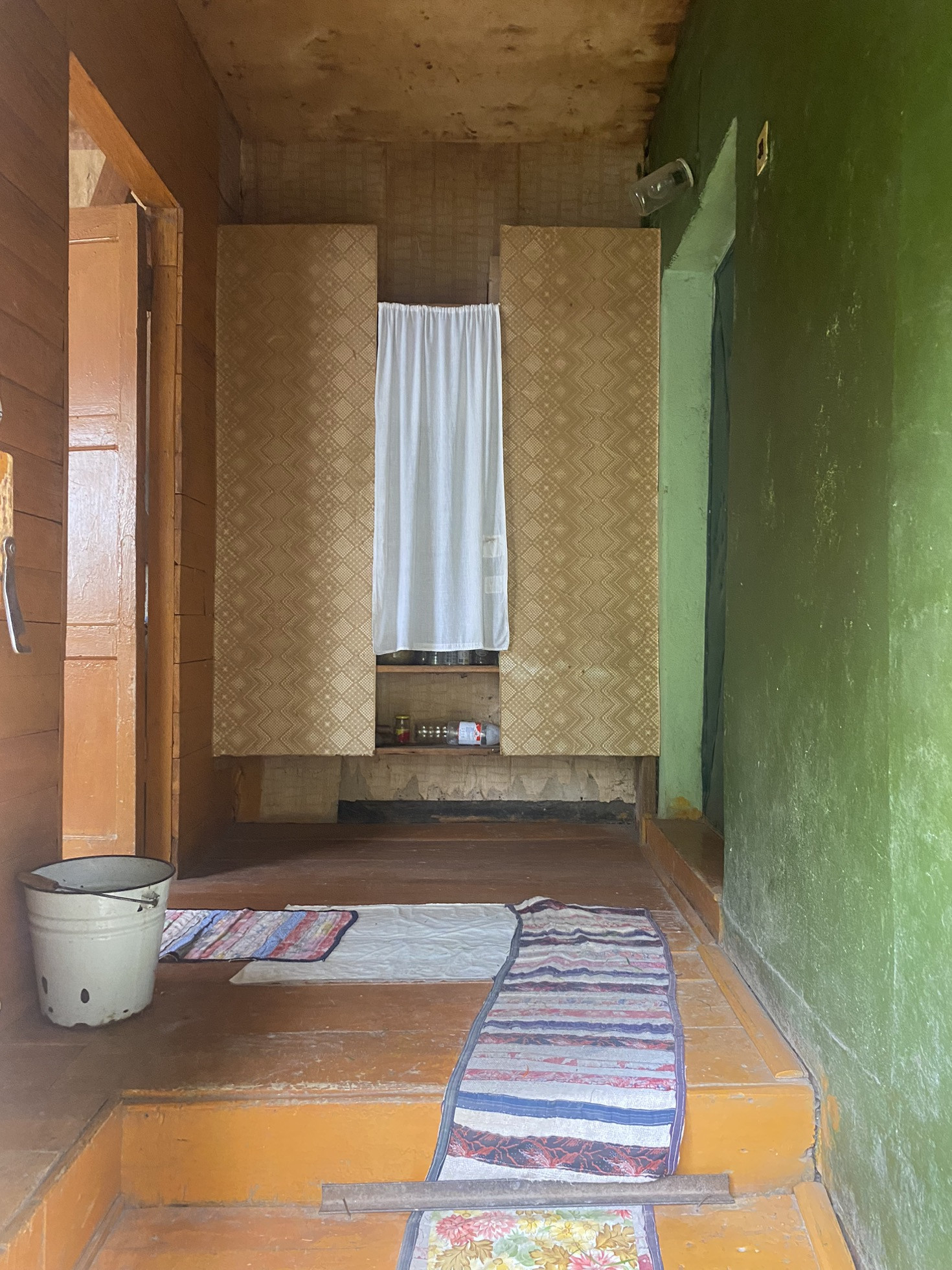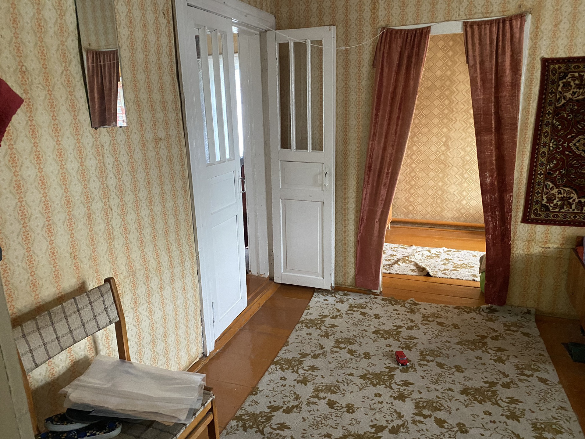 3 комнаты, кухня, терраска, подпол (под всем домом), чердак.
