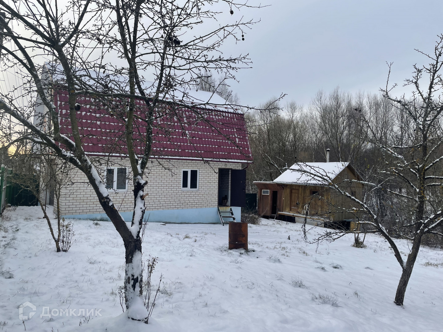 На участке много плодовых деревьев: яблони, груши, сливы, а так же кусты смородины, малины.