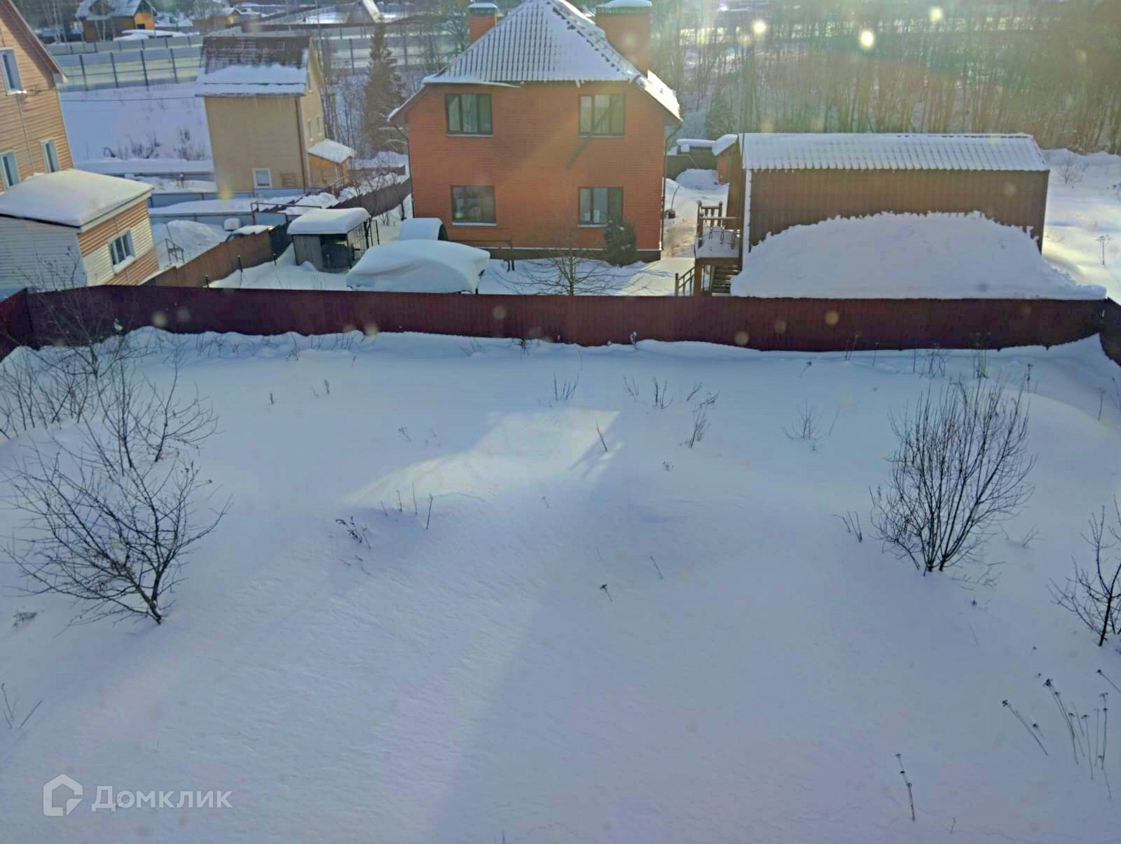 На участке гараж на одну машину и беседка из кирпича на фундаменте. Фасад забора полностью из кирпича, откатные ворота, далее по периметру профлист.