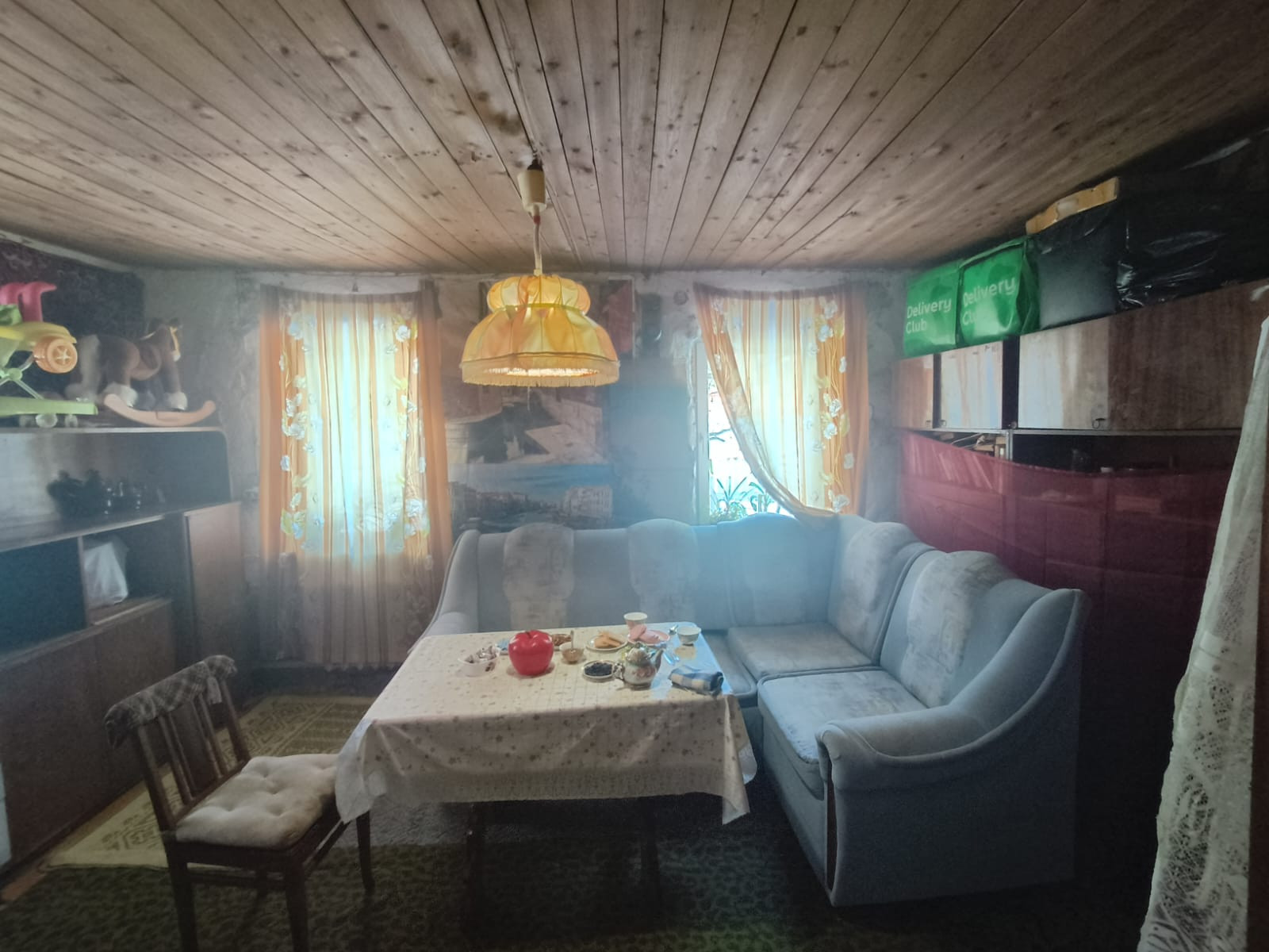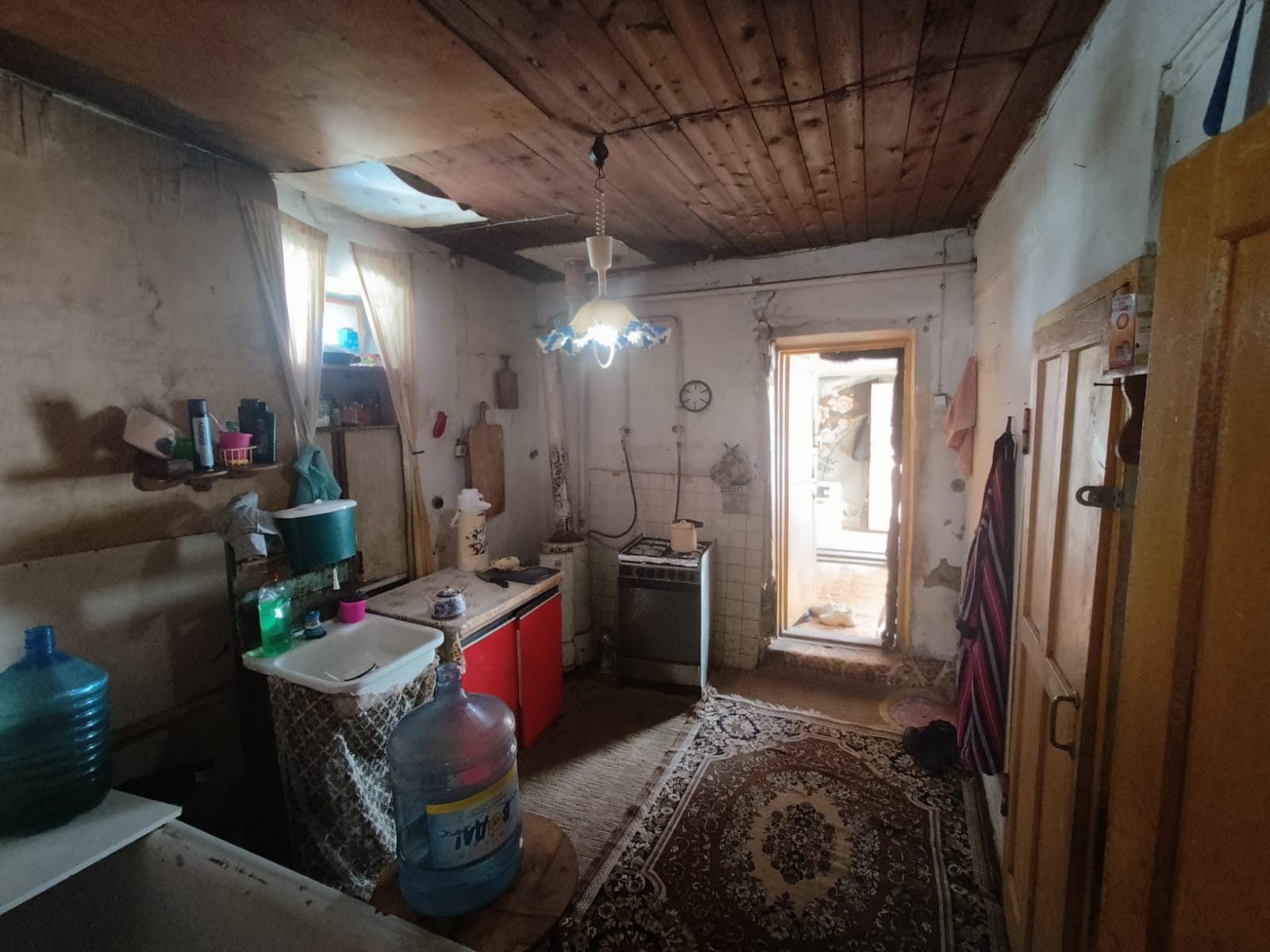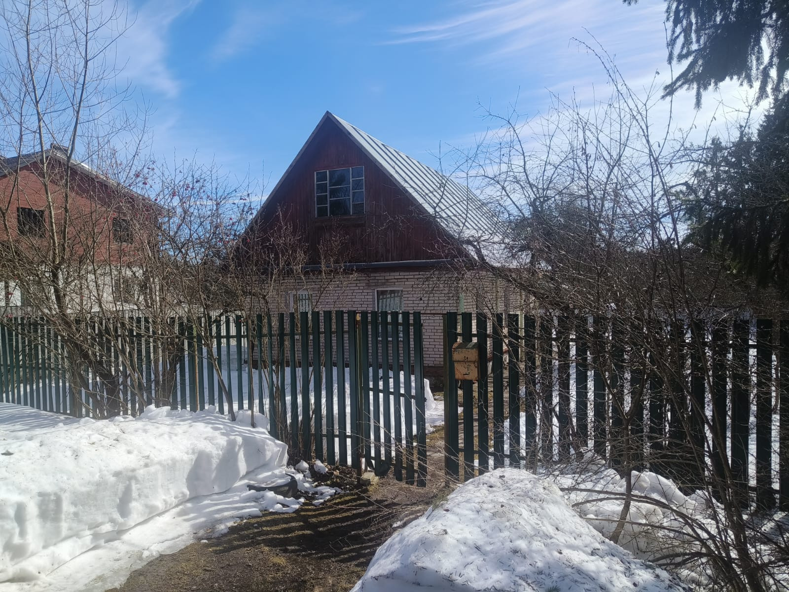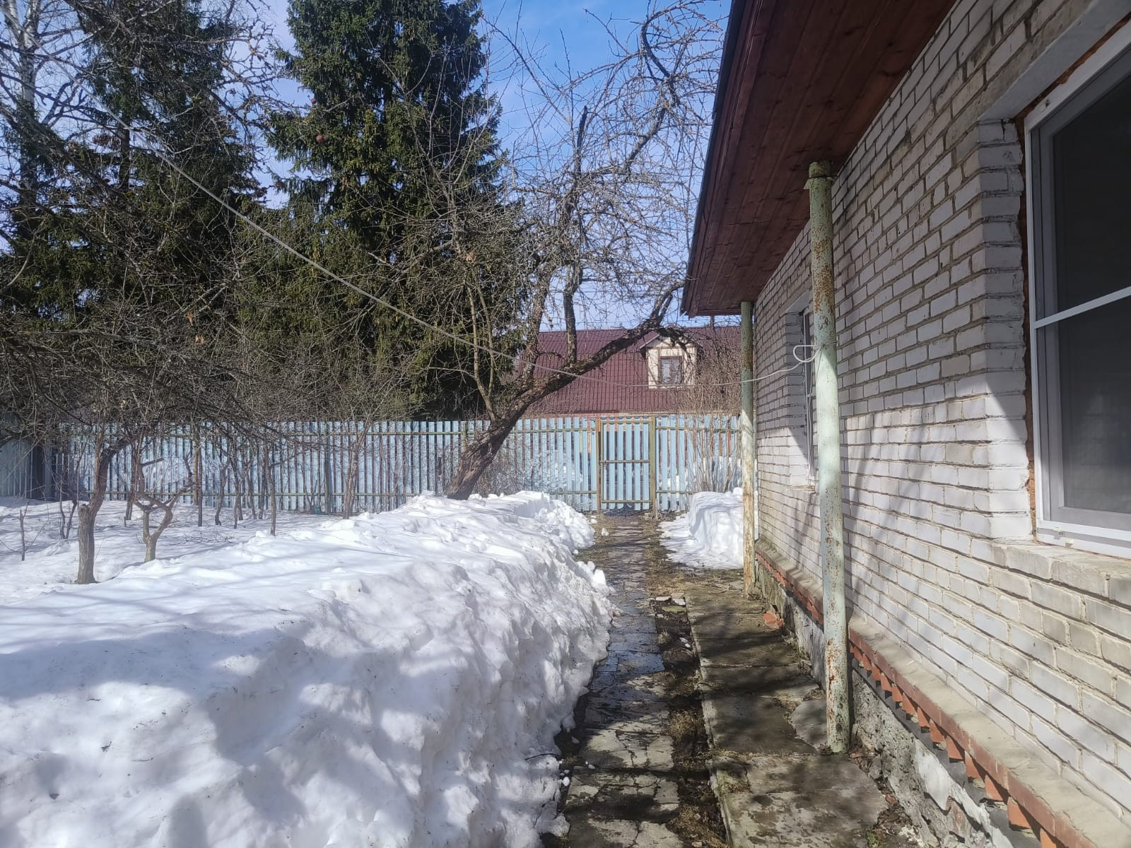 Дом с центральным газовым отоплением, вода:  колонка 20 м от калитки, колодец водопровода 3 м от участка, электричество. На участке яблони 6, сливы 3, несколько кустов смородина и крыжовник, клубника.
