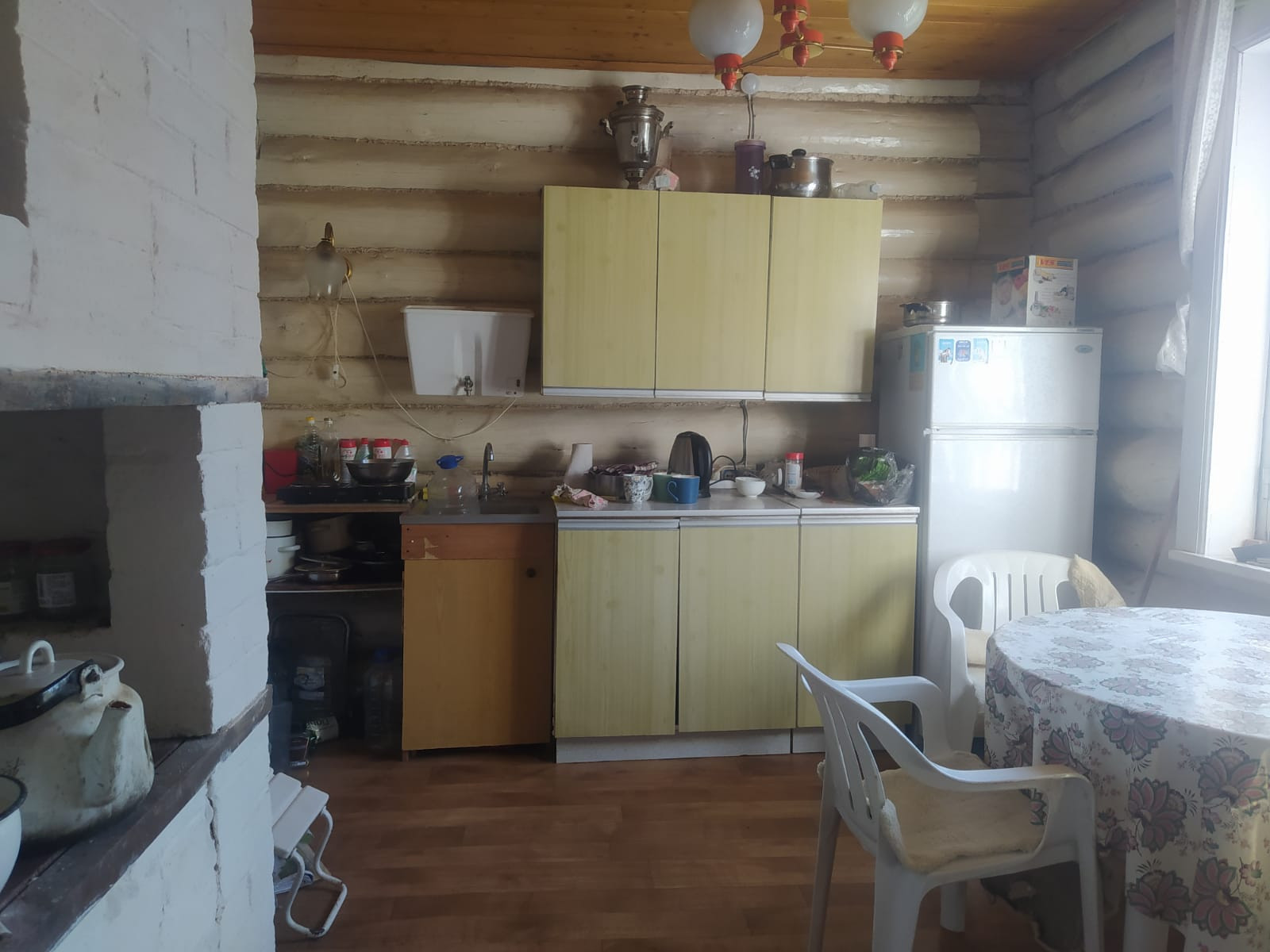 В доме 4 комнаты(14,7+5,5+5,4+22,3) и кухня 9,9м2. Мебель остается новым владельцам.