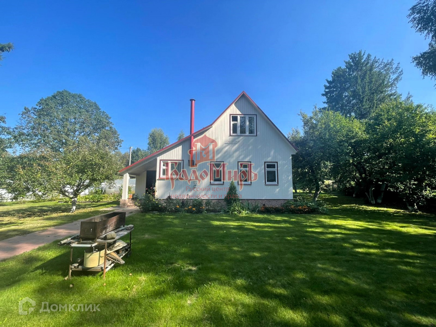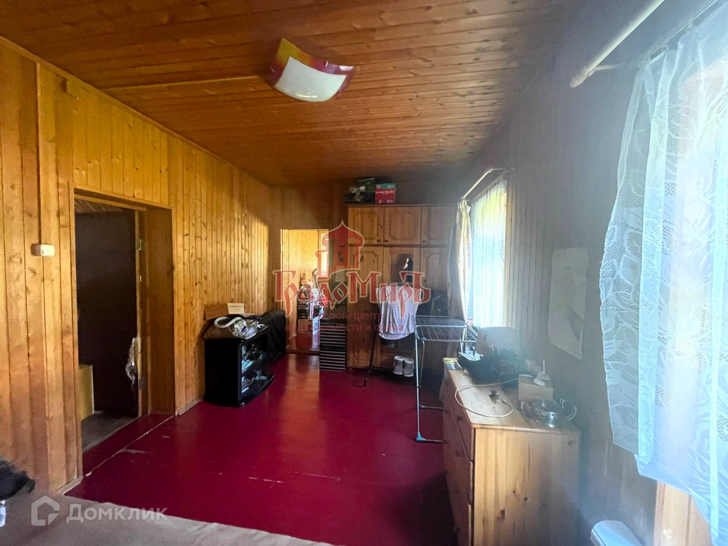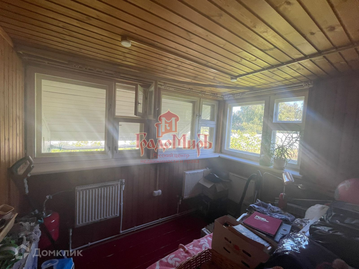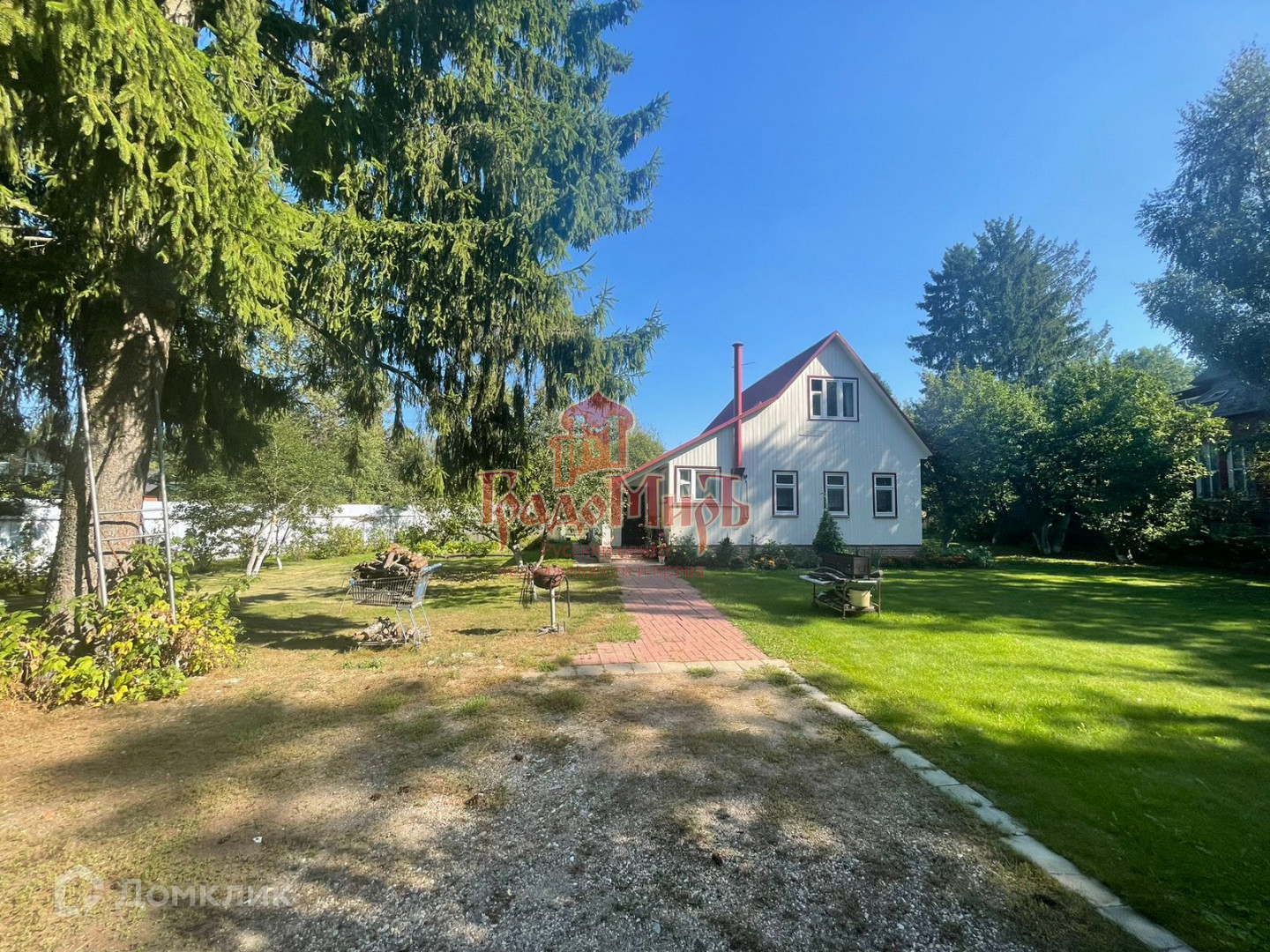Бревенчатый дом стоит на ленточном фундаменте, общая площадь 120 м2 три комнаты на первом этаже и большая комната во весь дом на мансардном этаже, уютная кухня, дом утеплен полностью в доме, проведено центральное газовое отопление, совмещенный санузел.