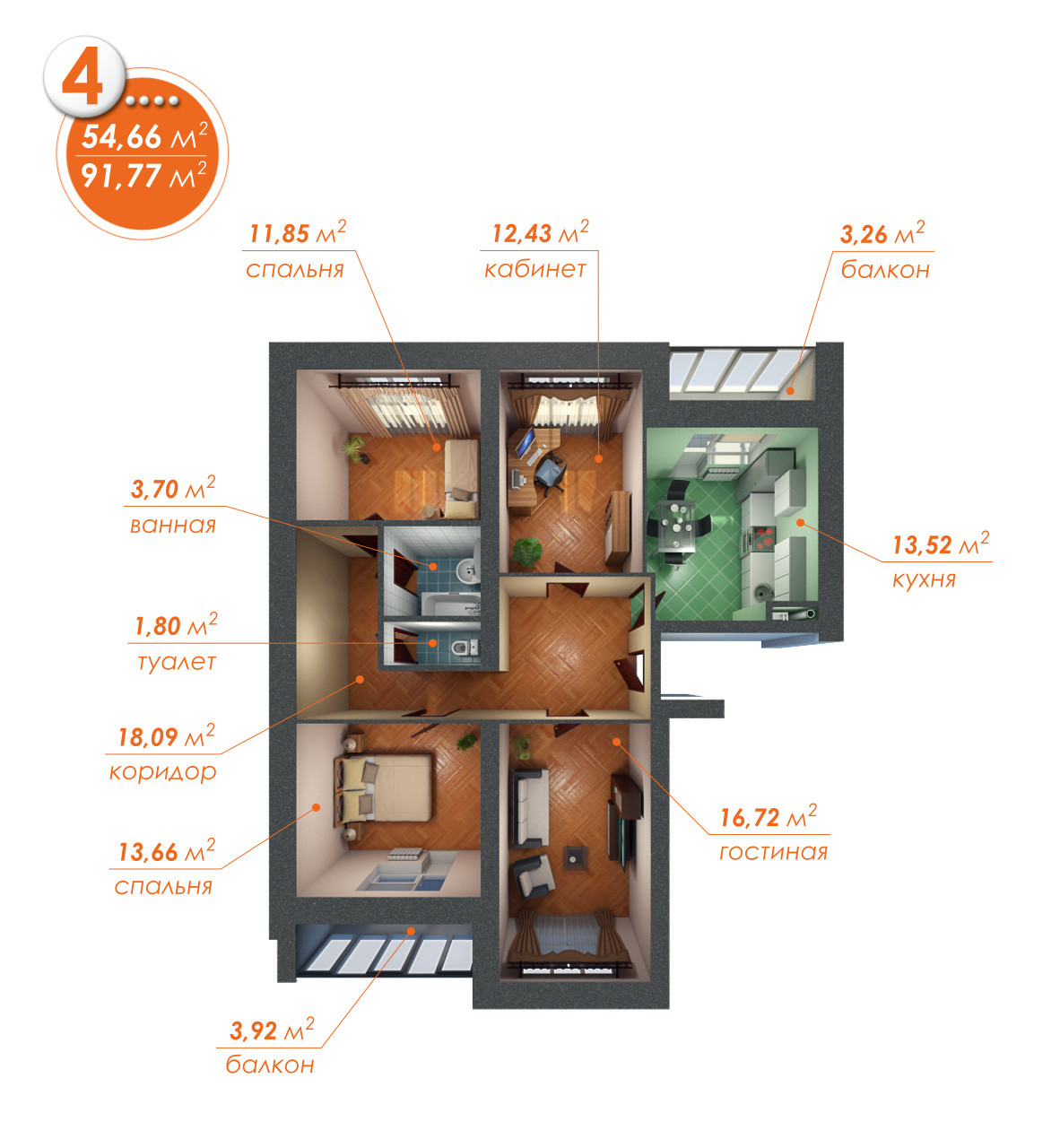 Количество комнат 4