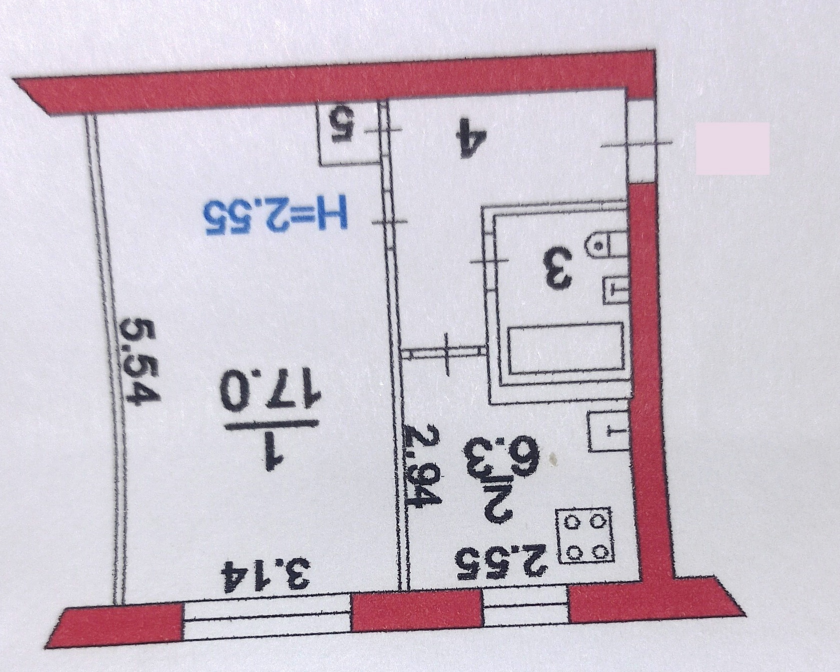 Площадь кухни 6.3 м2