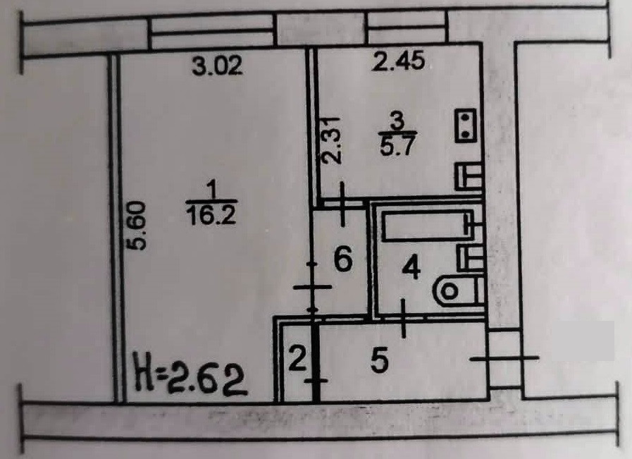 Жилая площадь 16.2 м2