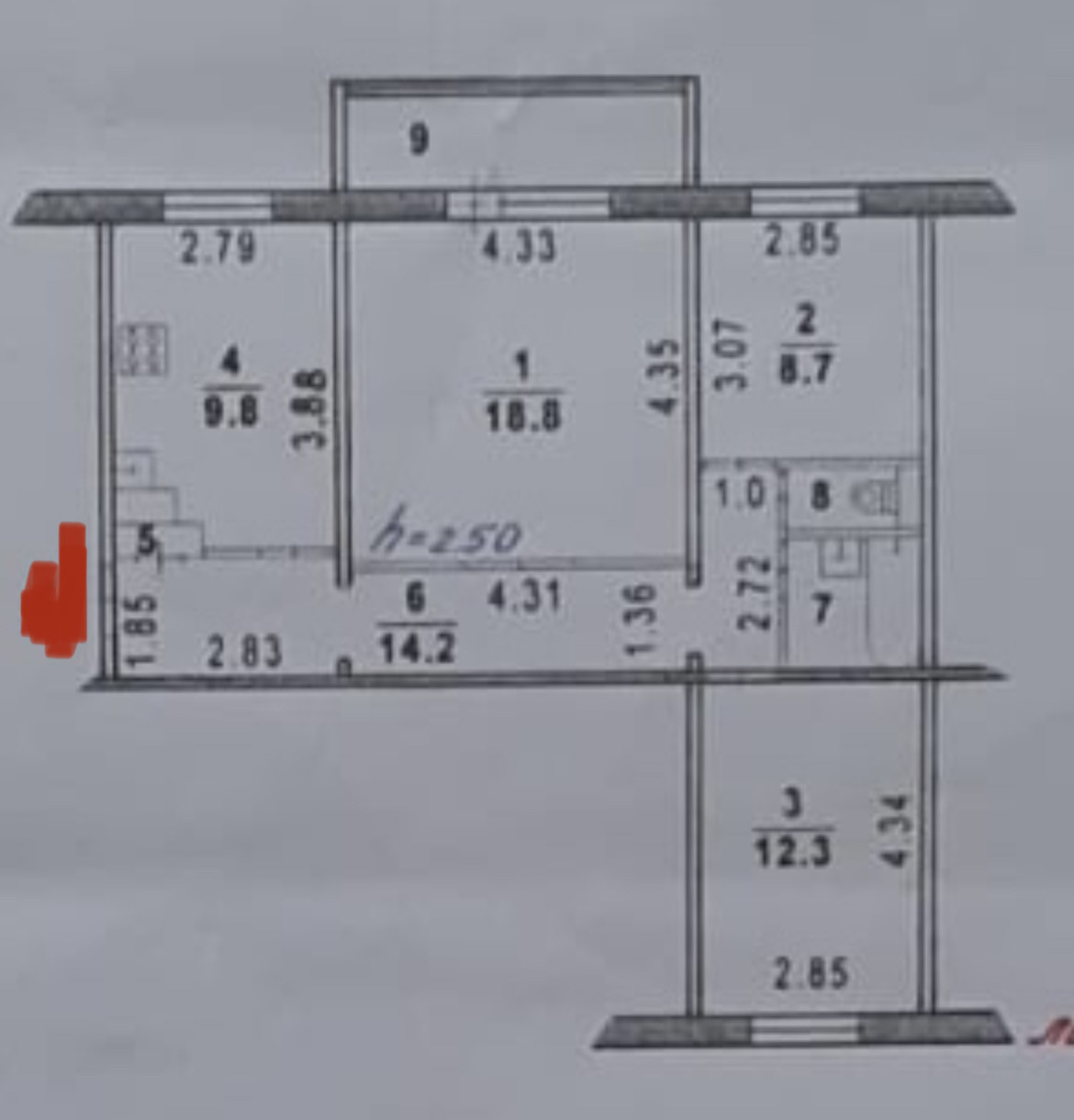 Высота потолков 2.5 м