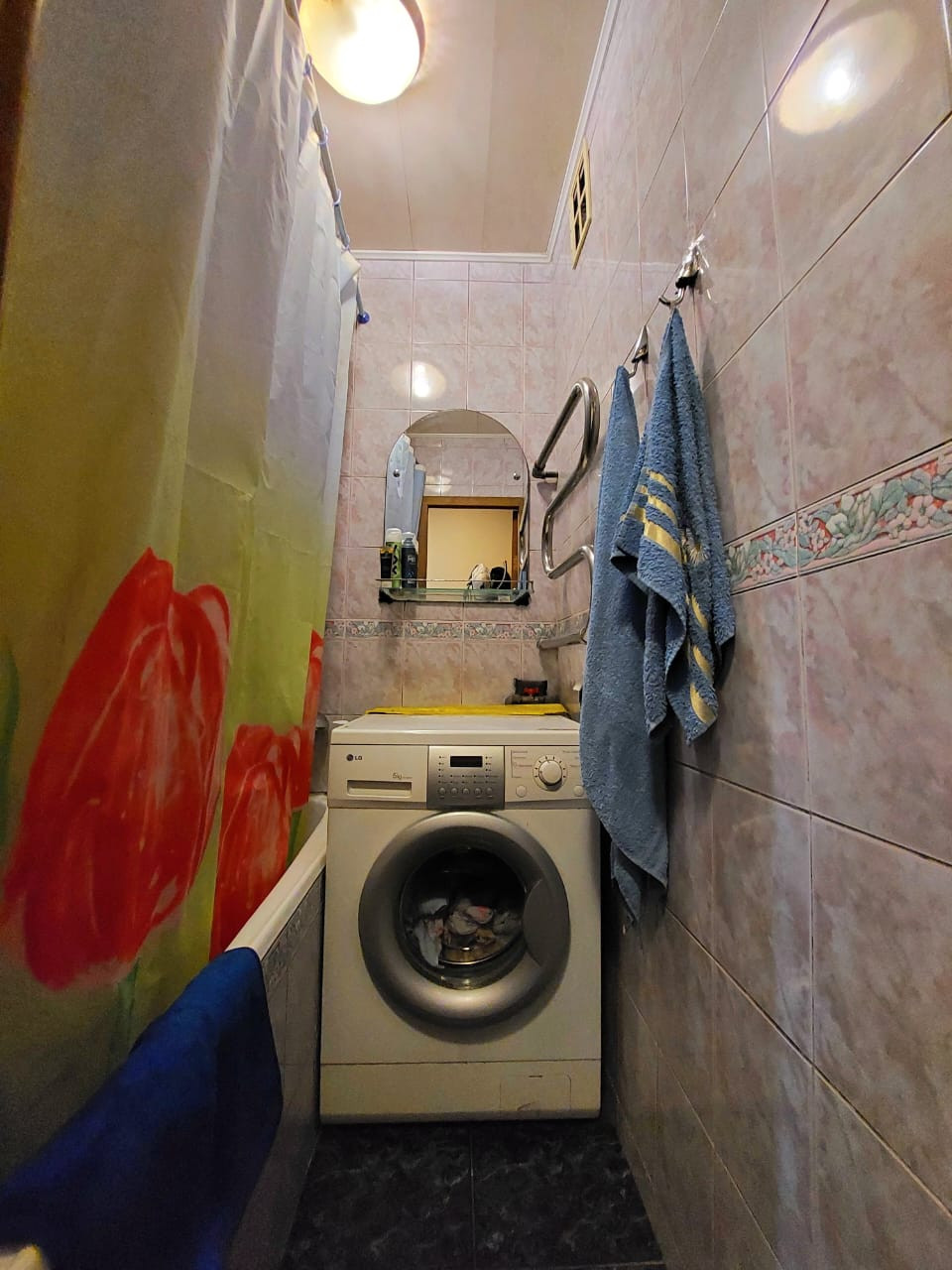 ванная комната облицована плиткой,балкон с остеклением.