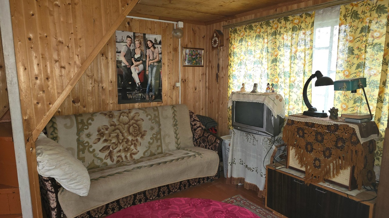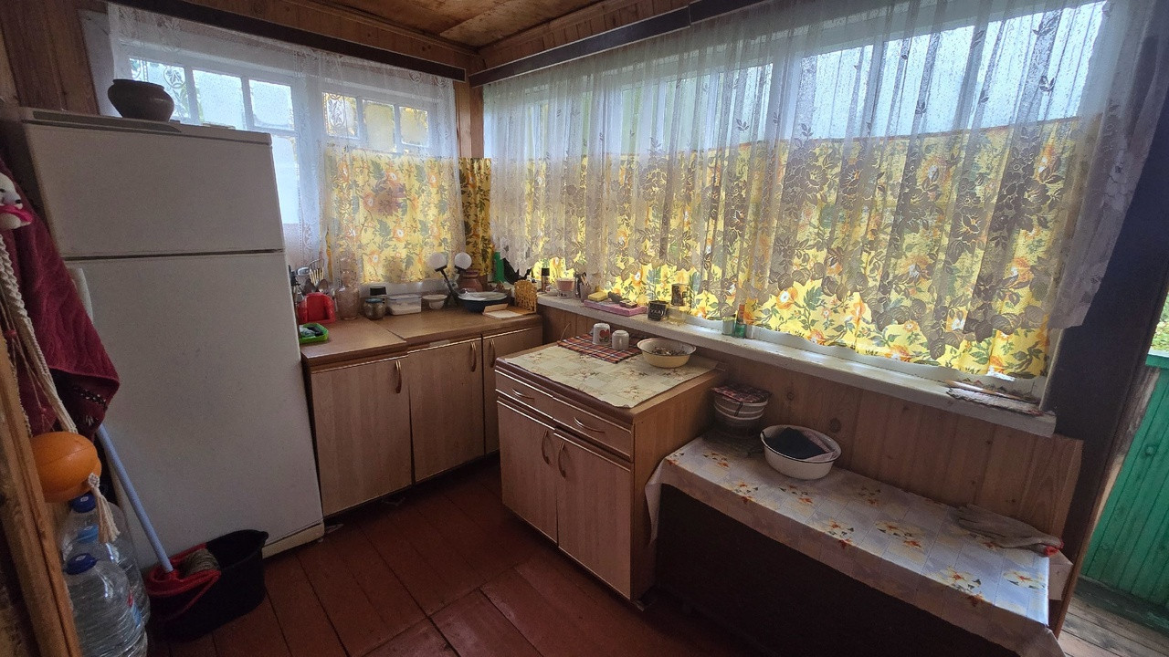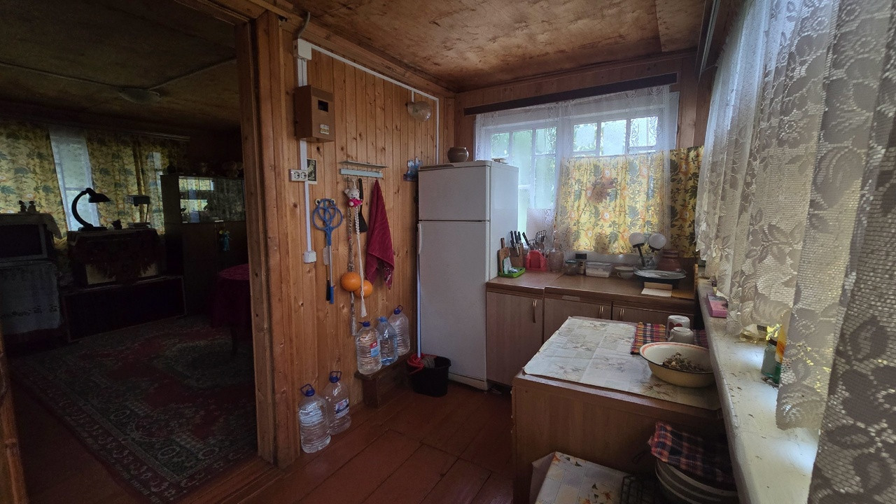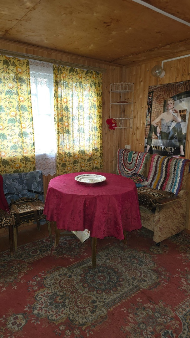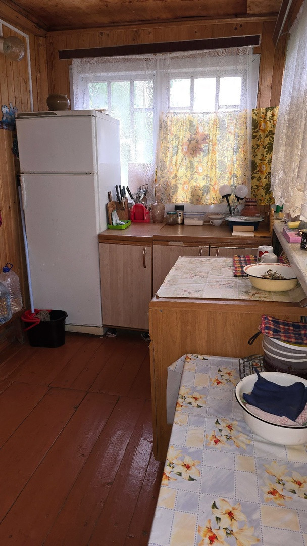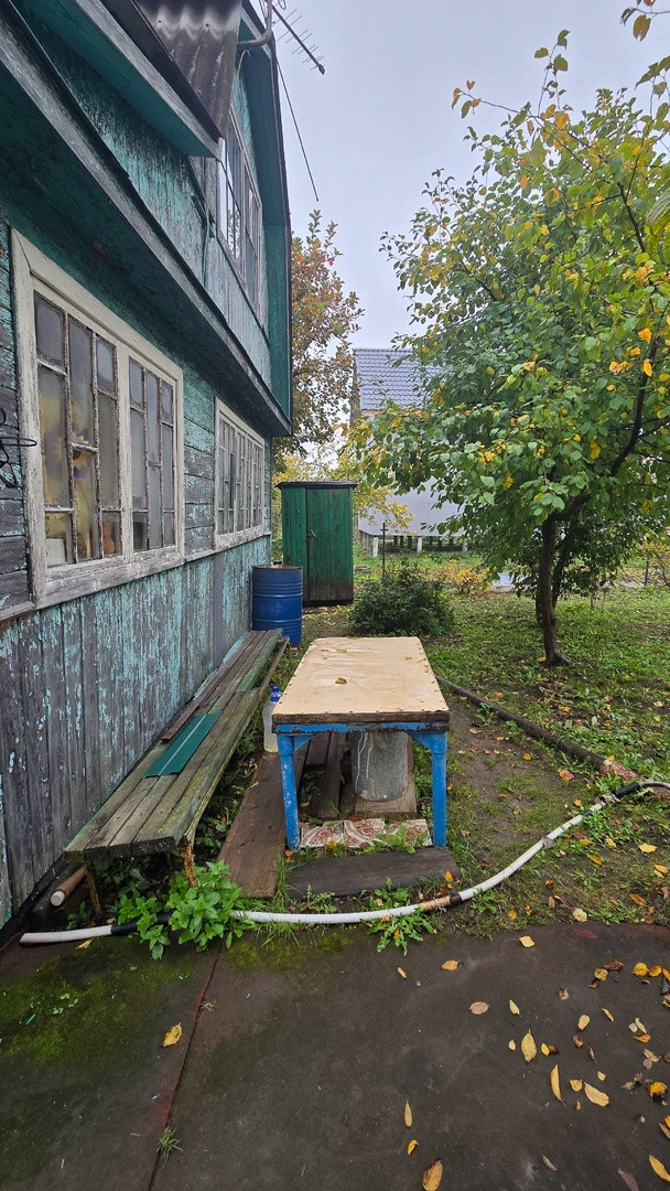 Дачный домик 3,5м*4,5м (не зарегистрирован!) имеет 2 этажа: на первом кухня и гостевая комната, на втором комната отдыха + кладовые. Коммуникации: вода летняя, электричество подведено и распределено по дому, душ и туалет уличные.