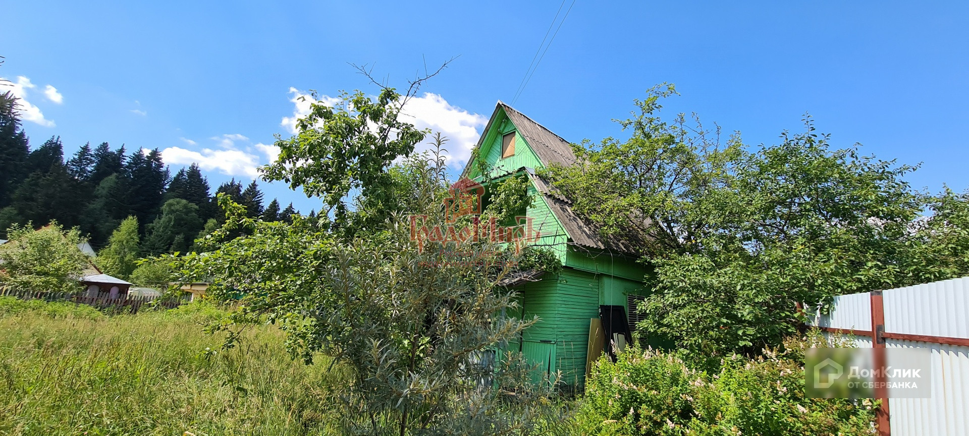 На территории построен хозблок из кирпича и баня.