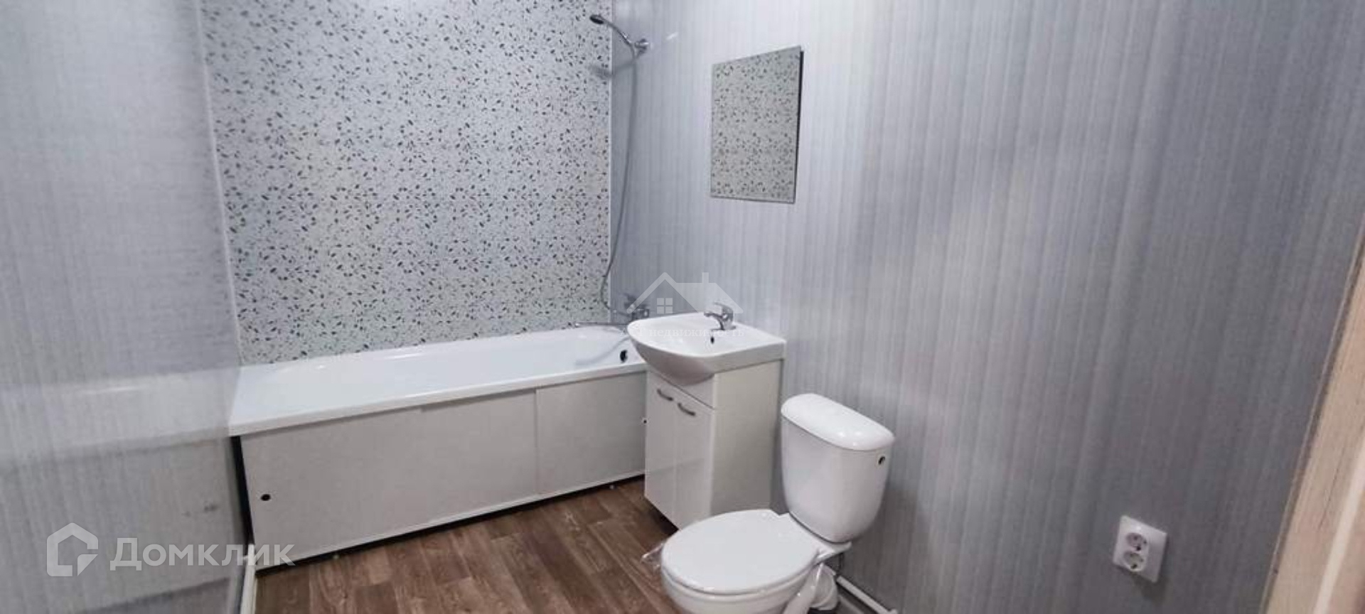 Стены оклеены обоями под покраску, напольное покрытие - ламинат, потолки натяжные. В бойлерной и санузле стены обшиты ПВХ-панелями, на полу постелен линолеум. Установлена сантехника.