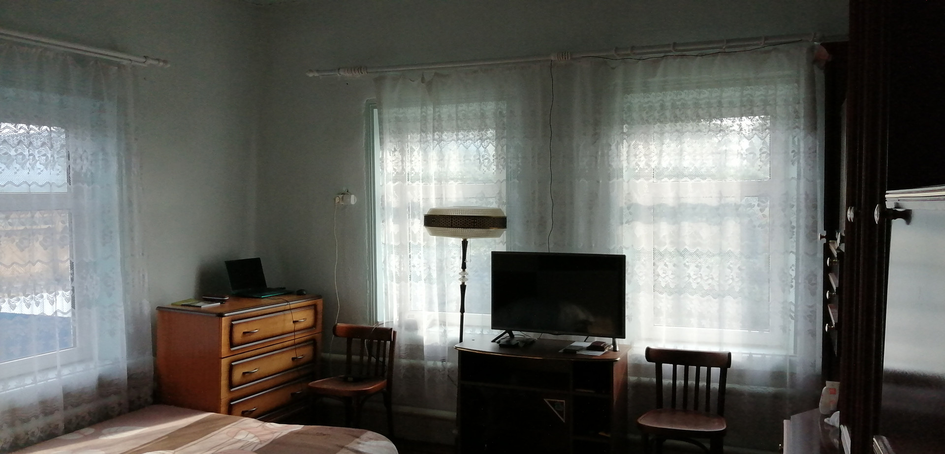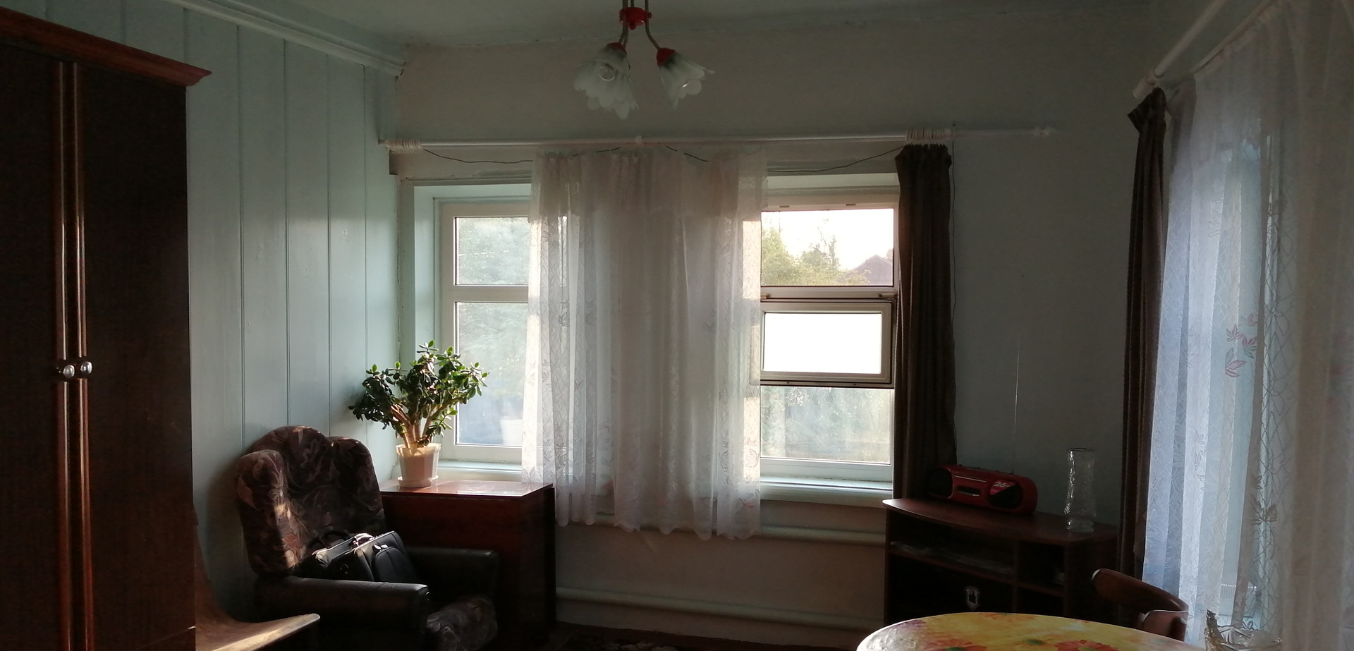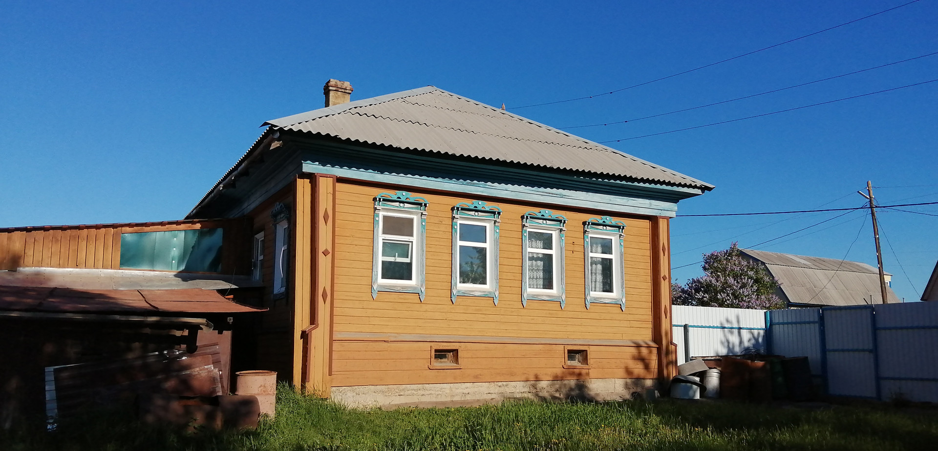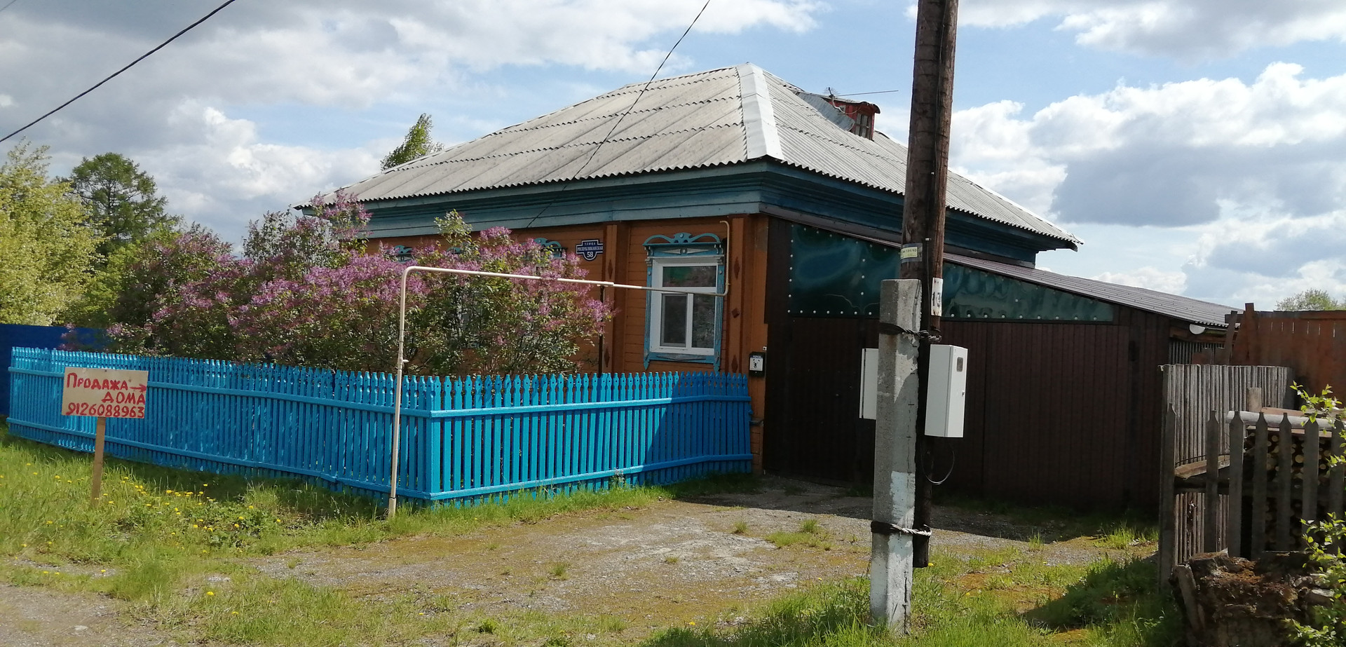 Дом пятистенок из крепких бревен, на фундаменте. В доме 2 комнаты, прихожая, ванная комната с туалетом, кухня, кладовая, сени, большой сухой подпол. Высокий потолок. Построен в 1954 году. Центральное газовое отопление. Автономное водоснабжение и канализация. Печь. Колодец. Новая большая крытая ограда. Бревенчатые баня и конюшня. Две теплицы. Овощная яма. В доме остаются мебель, бытовая техника. Асфальт до дома. Уличное освещение. Рядом остановка автобусов.