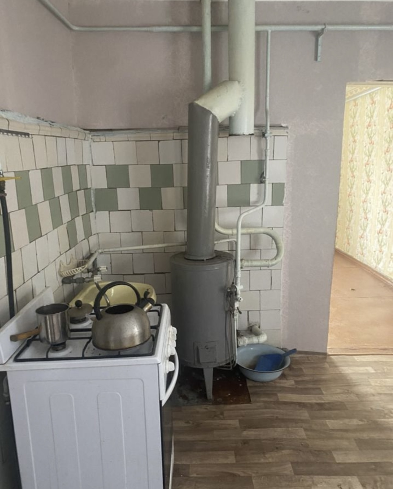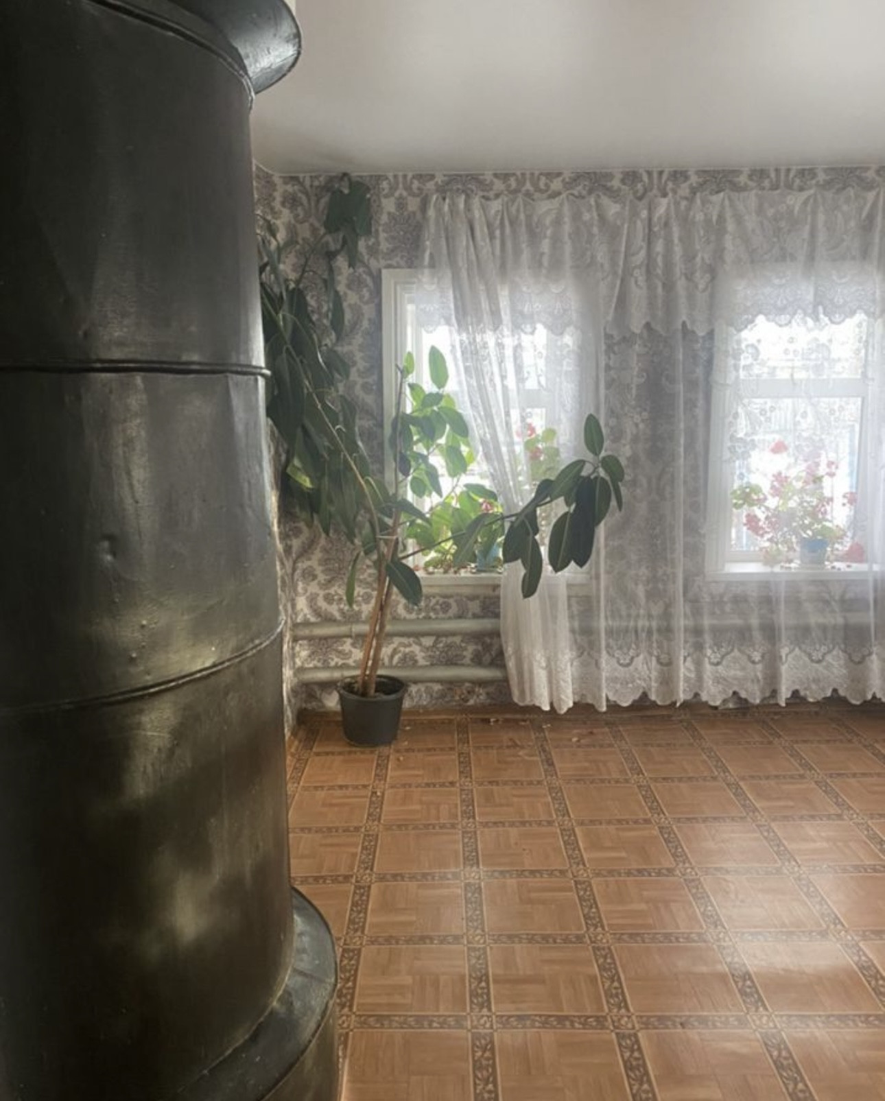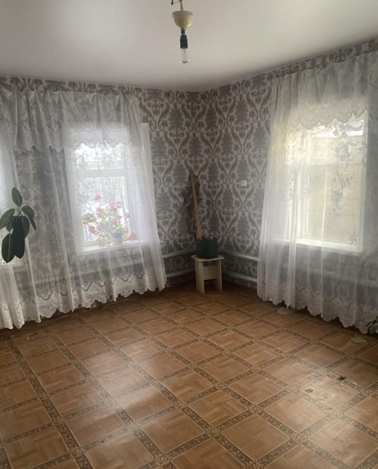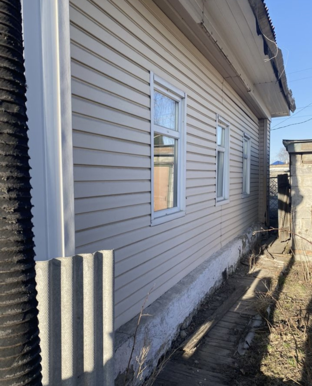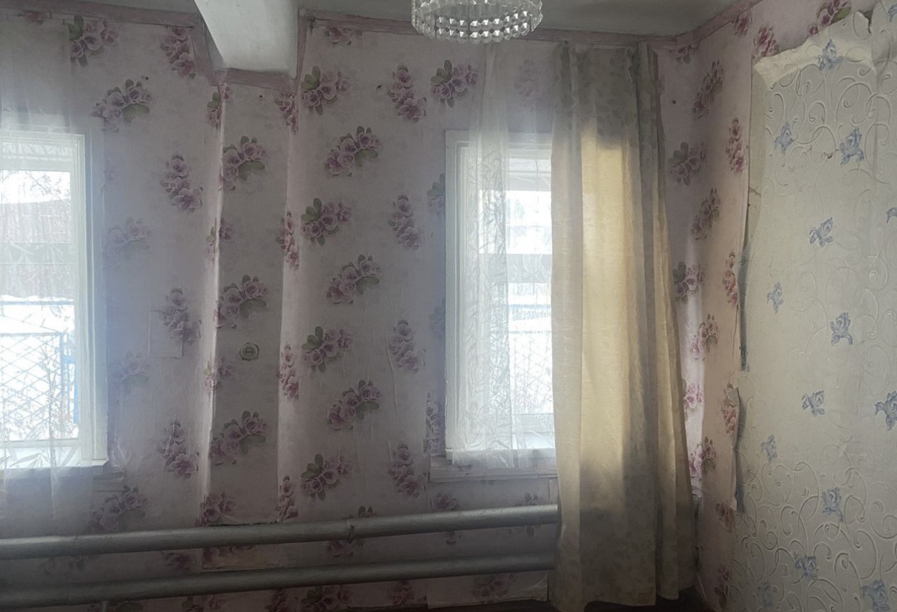 Дом На фундаменте . Газ заведён в дом . Газовое отопление. Вода проведена.Три комнаты и кухня . В кухне глубокое подполье. Стеклопакеты. Есть гараж, помещения для разведения домашнего скота, крытый двор. Туалет в ограде. Маленькая баня. Земельный Участок в собственности, есть теплица.