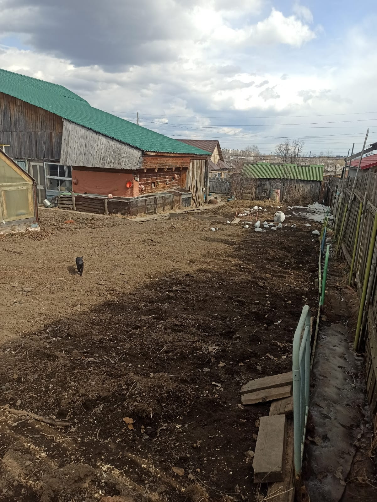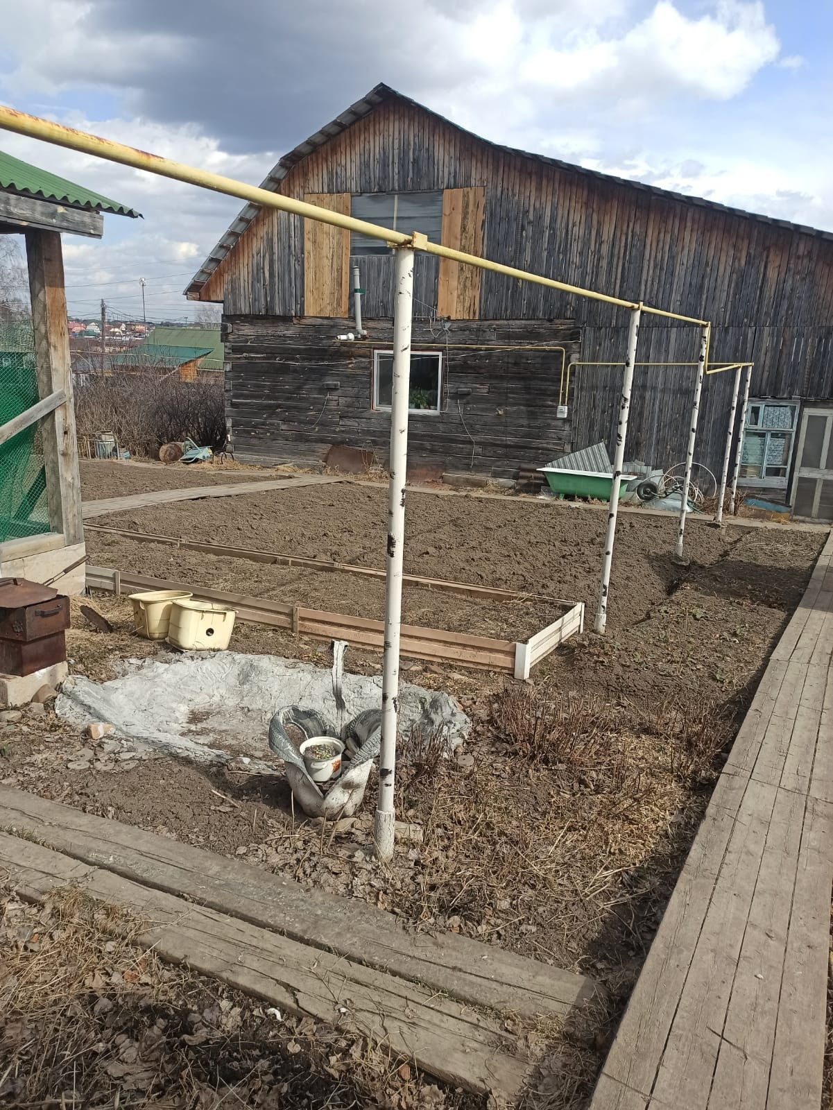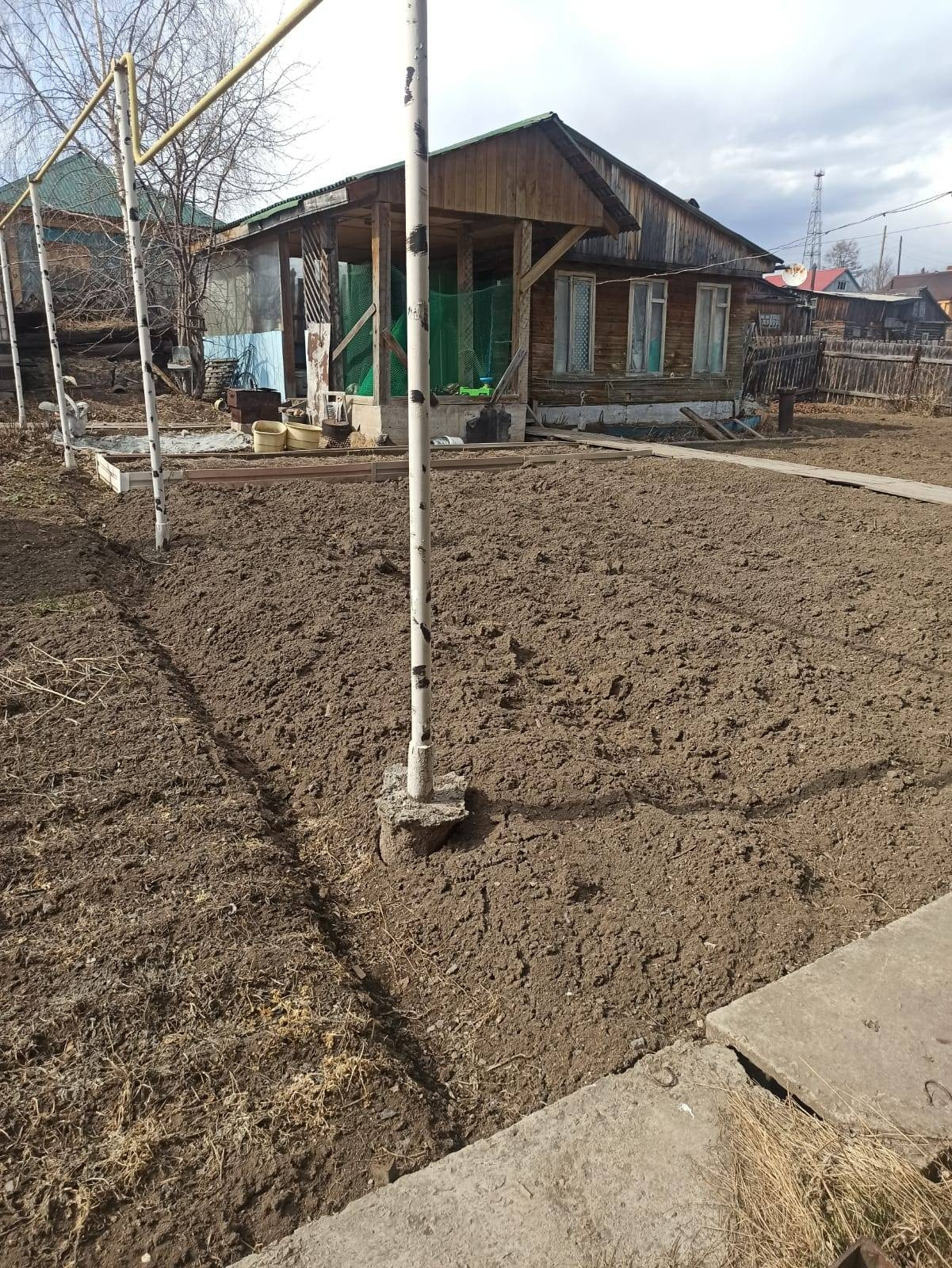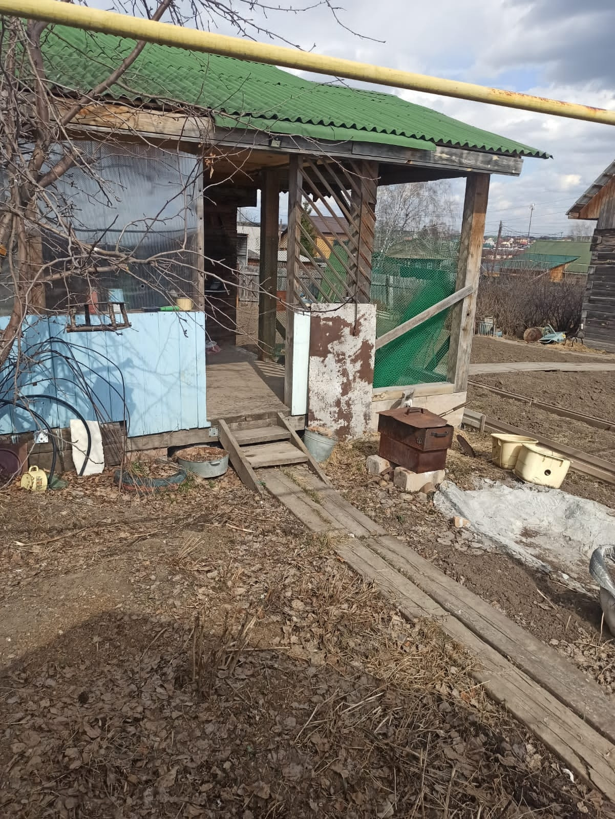 Участок разработан, на нем также имеется кустарники и плодовые деревья. На участке находятся : баня с верандой, детская площадка, две теплицы, хоз. постройки, залит фундамент под гараж, а также имеется полистирол блоки для него. Перед домом имеется отсыпанная стоянка.