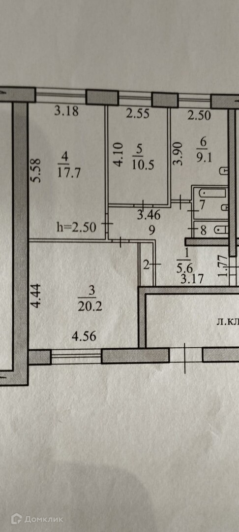 Высота потолков 2.5 м