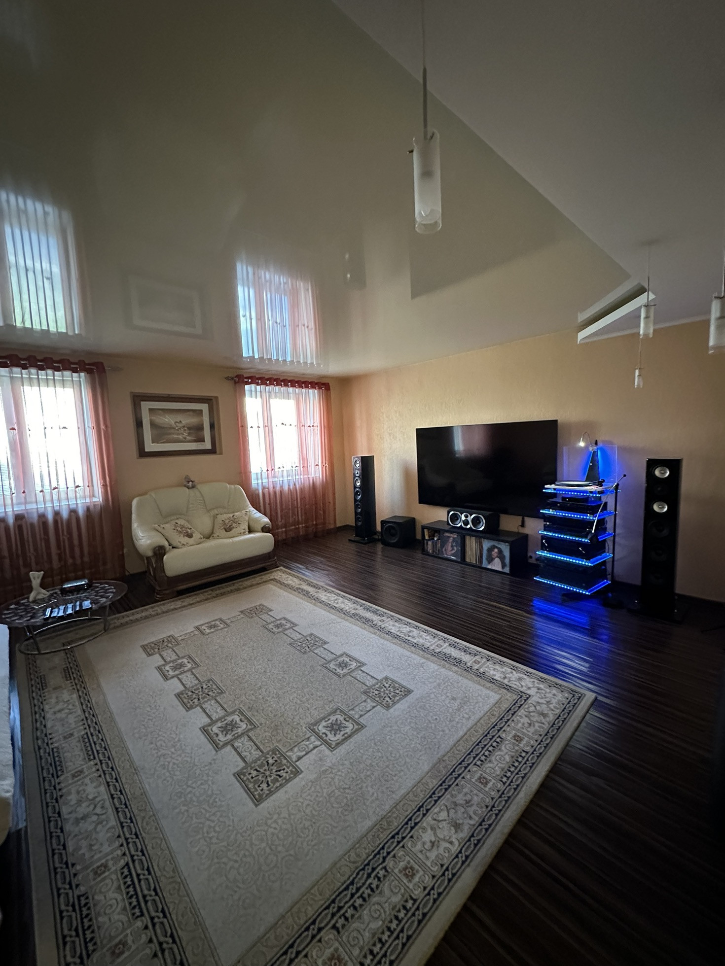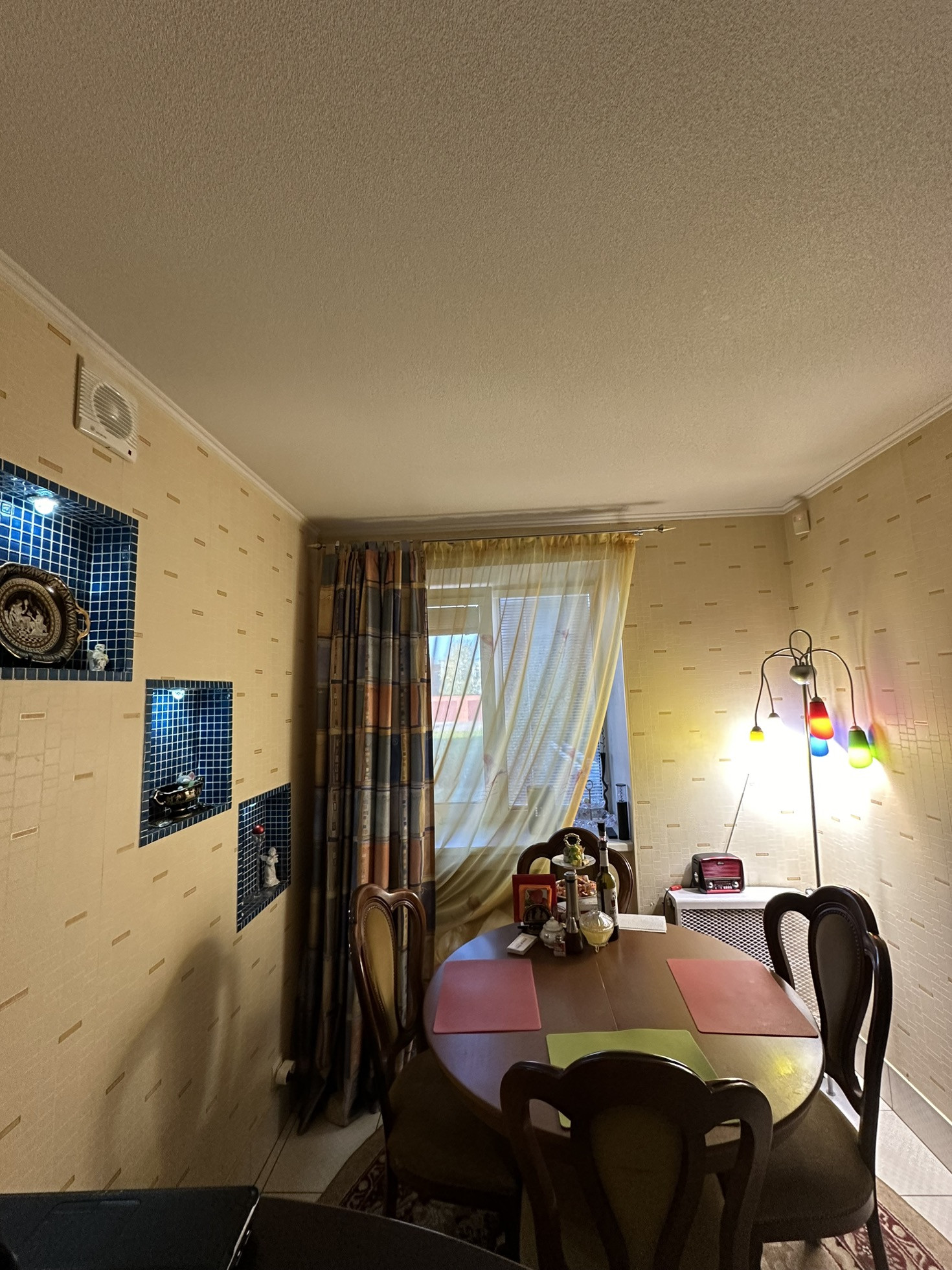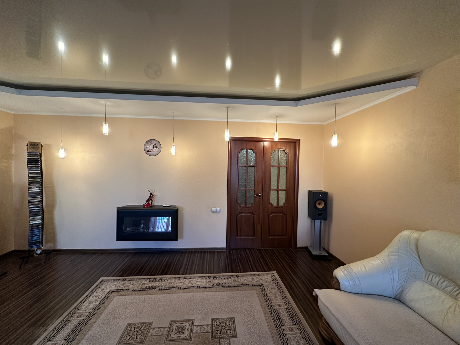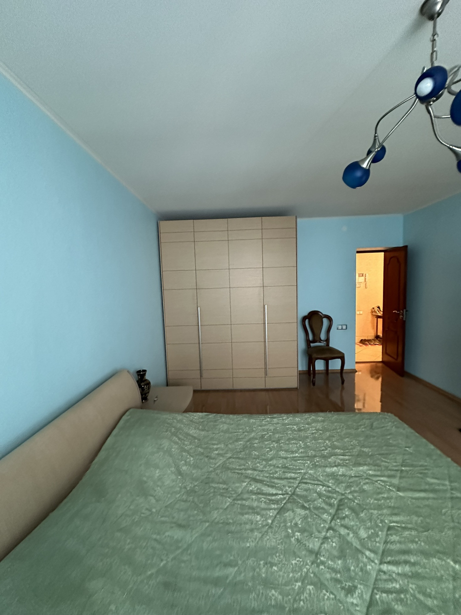 Ремонт сделан из дорогих и качественных итальянских и немецких  материалов . Межкомнатные двери с резиновыми уплотнителями из шпона махагона. Входная -бронированная сейф-дверь . В квартире много вариантов подсветки . В прихожей установлен вместительный шкаф-купе .