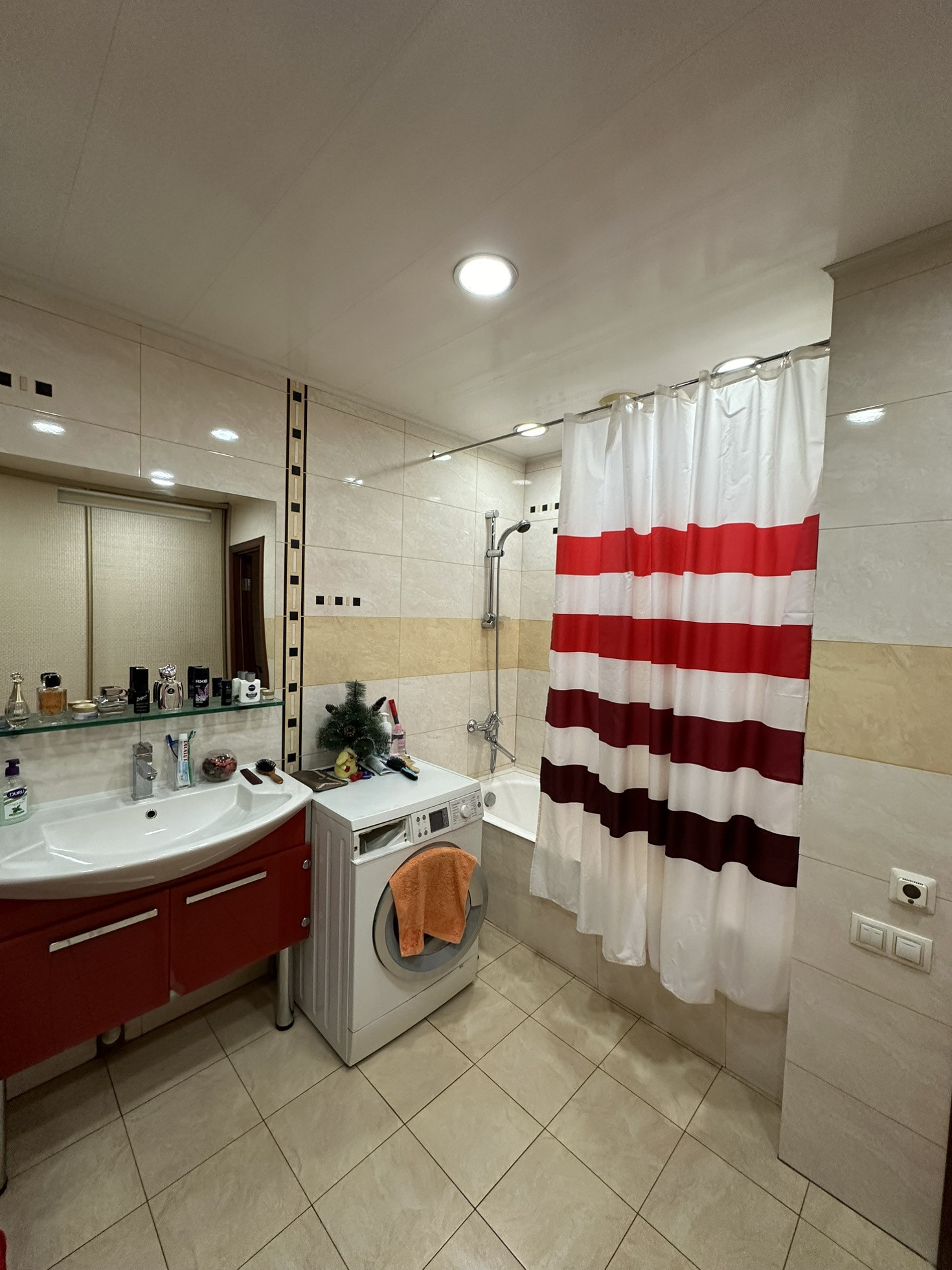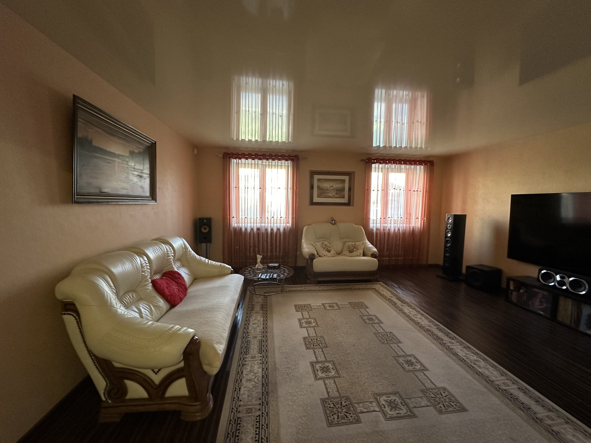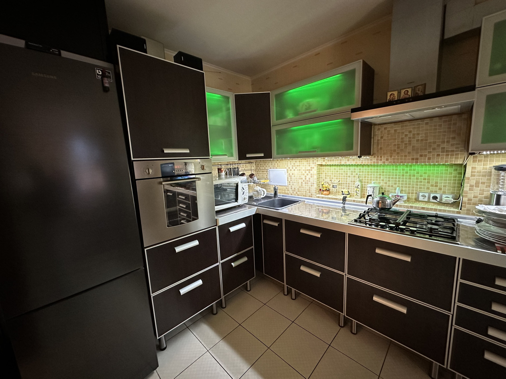 В квартире имеется раздельный санузел, где в ванной комнате можно наслаждаться просмотром любимых передач или кино и установлен встроенный шкаф-купе. Благодаря продуманной планировке и большой площади, каждый  найдёт здесь свой уголок для отдыха и работы. Кухня большая, вся техника очень известных брендов ( Кайзер, Самсунг, Бош, Сименс)