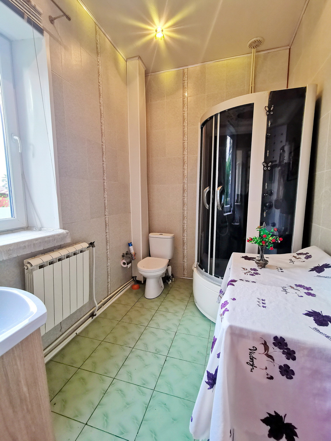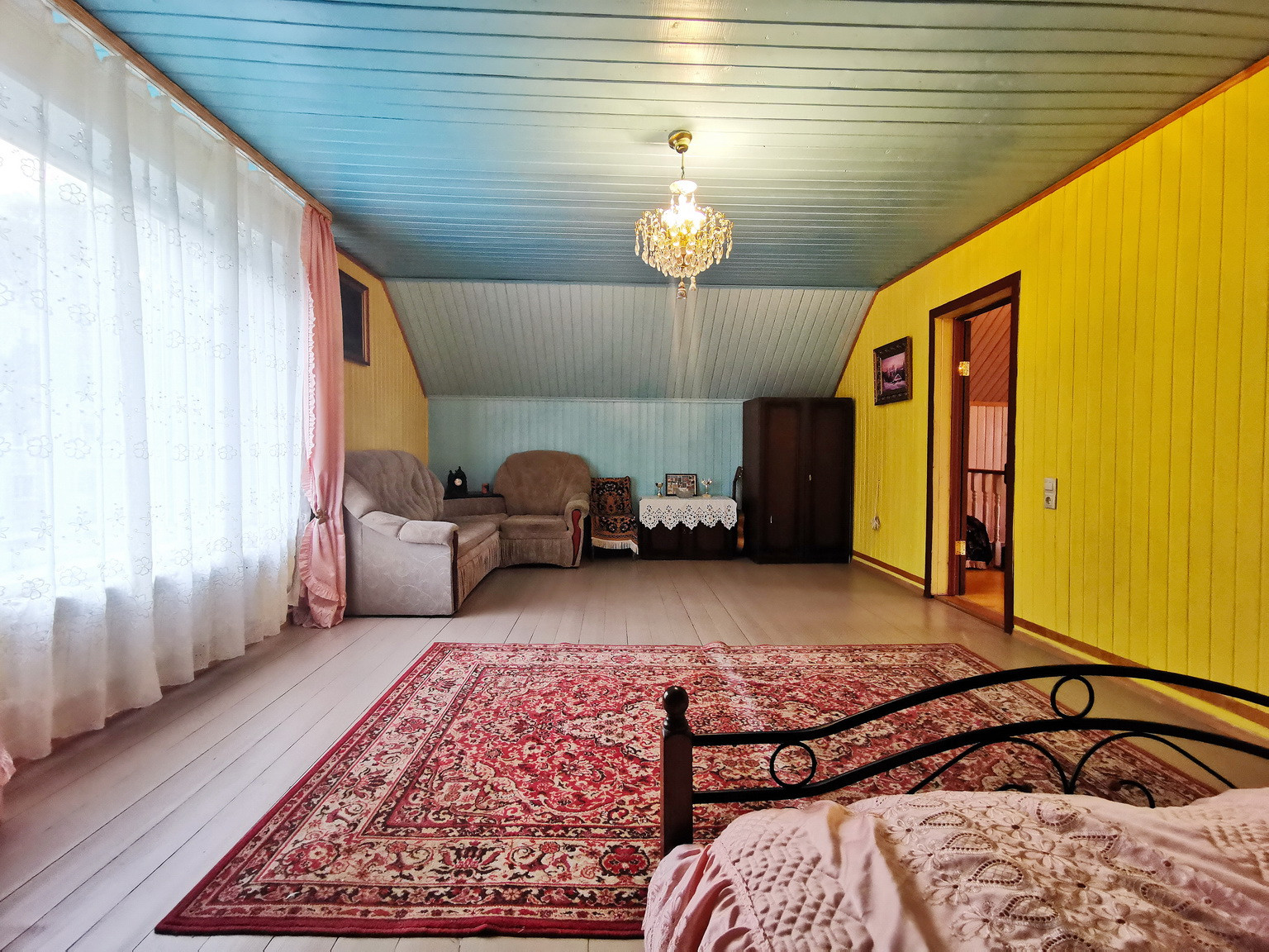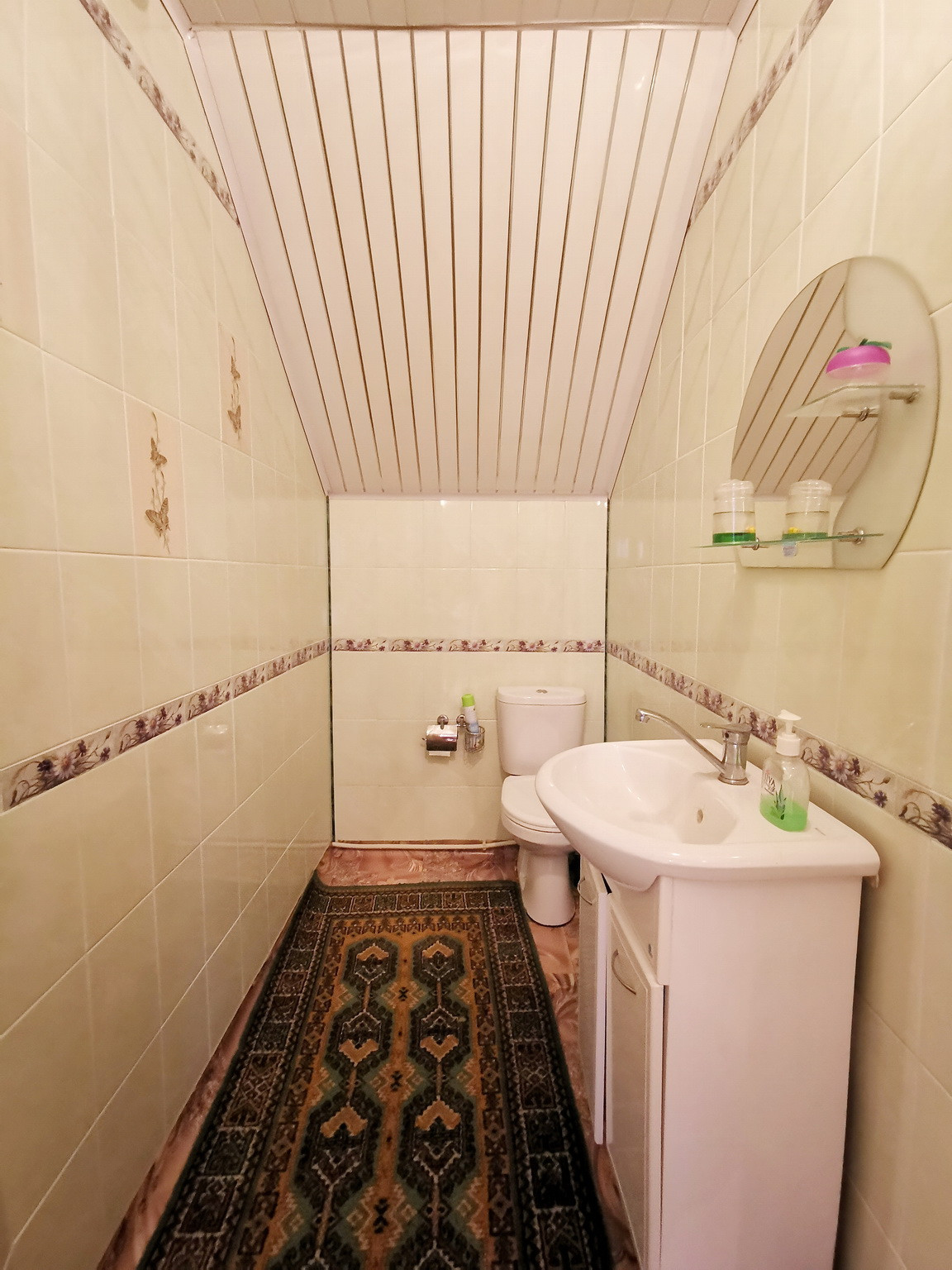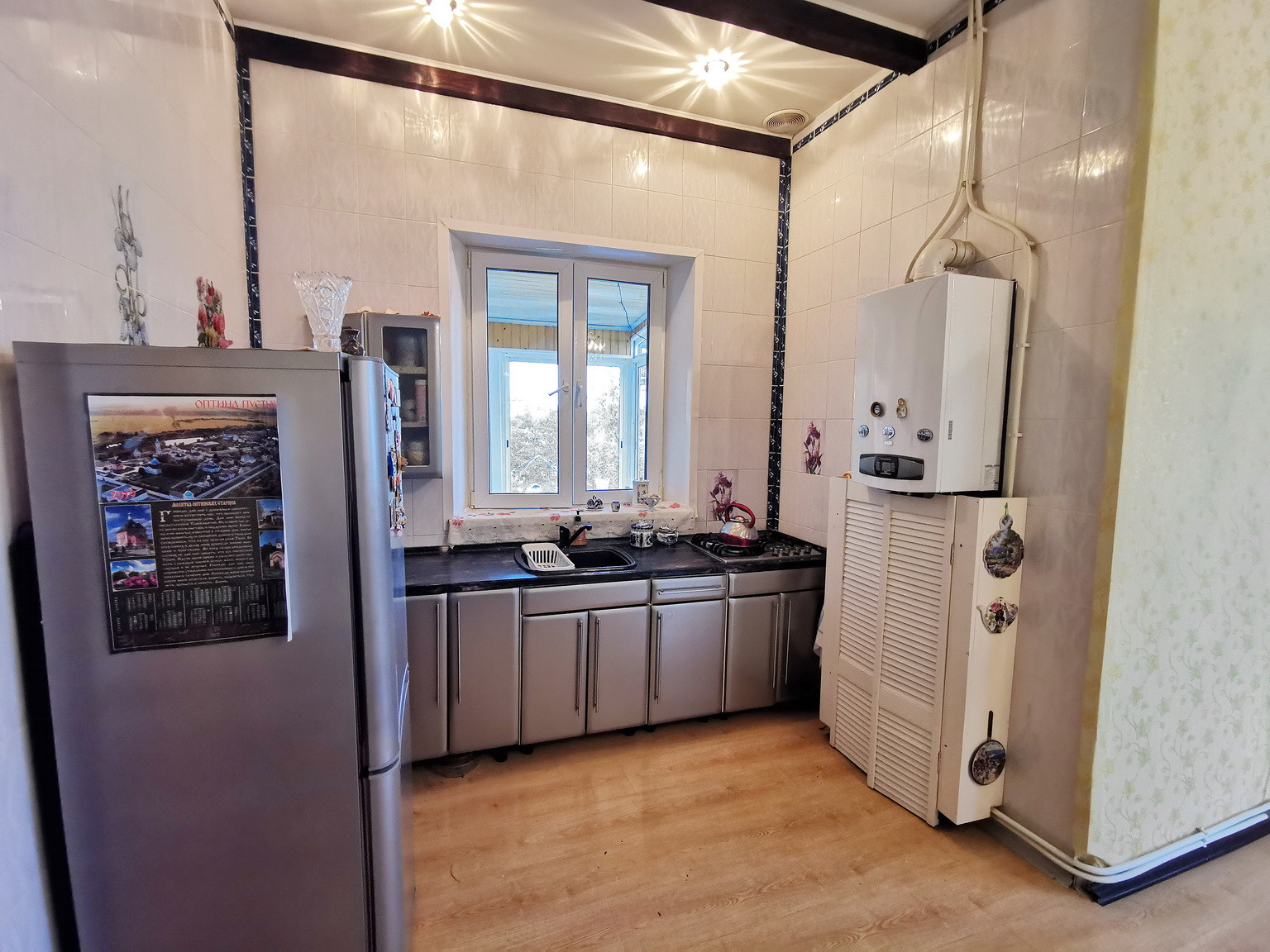 Дом площадью 150 кв.м, 2013 года постройки, брусовой, утеплен и обложен кирпичем, на ленточном фундаменте со всеми городскими коммуникациями: эл-во 15 кВт, газ (отопление и горячая вода - двухконтурный газовый котел), центральное водоснабжение, канализация, интернет. Первый этаж состоит из веранды, коридора, кухни-гостиной, большой спальни и сан.узла. На втором этаже - зал, спальня, туалет и лестница на чердак, также в доме есть подвальное помещение.