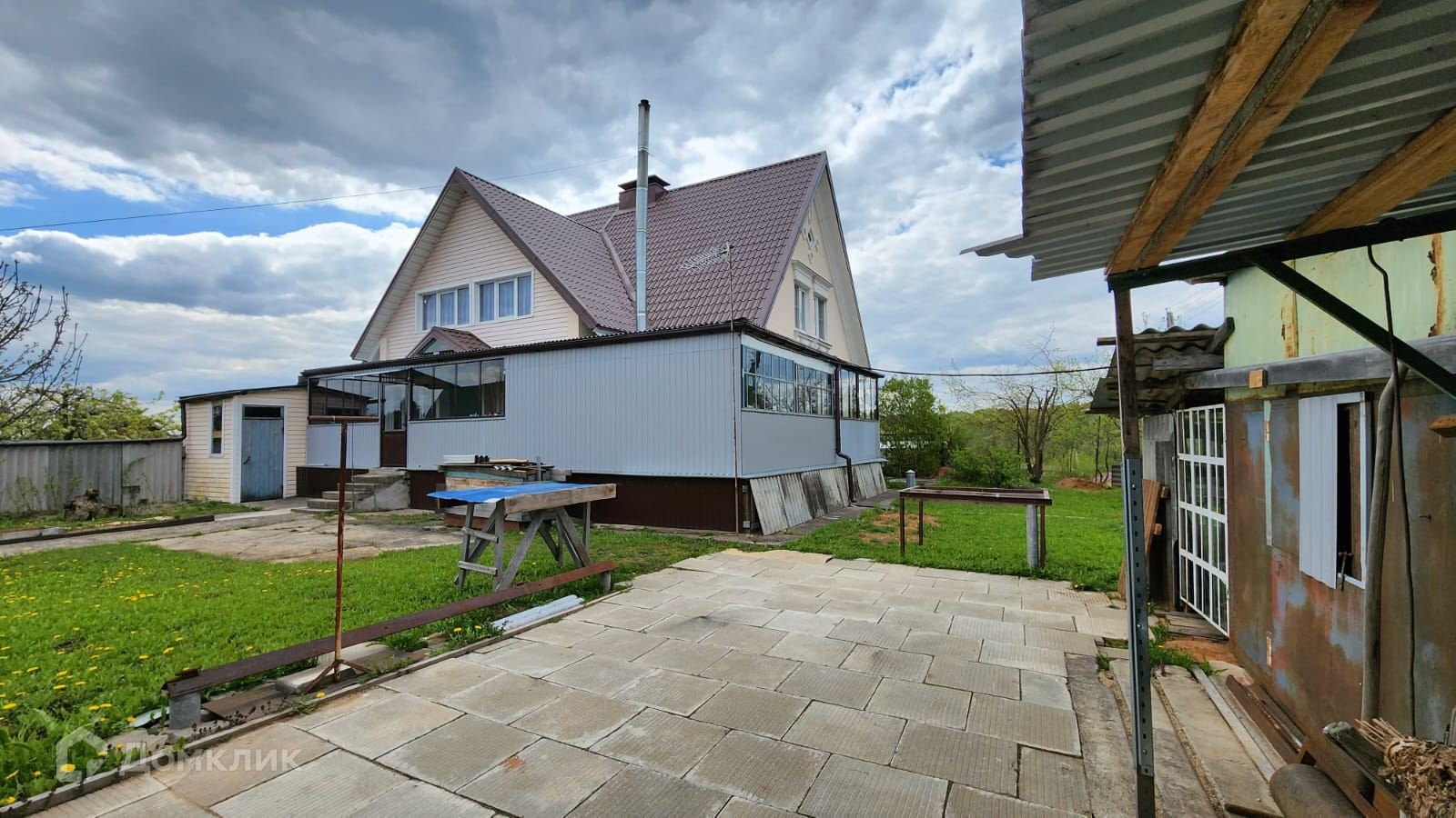 На участке навес под машину, хозблок.