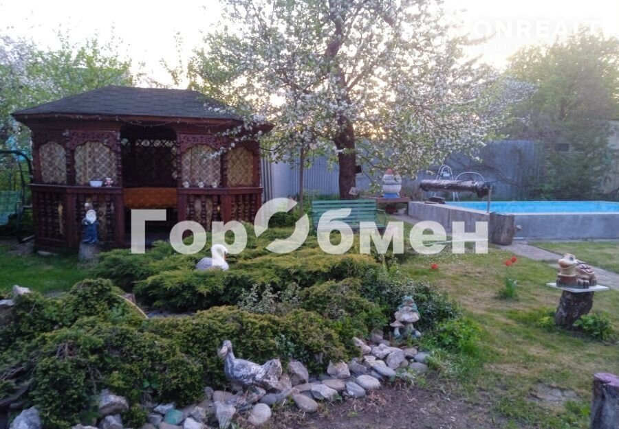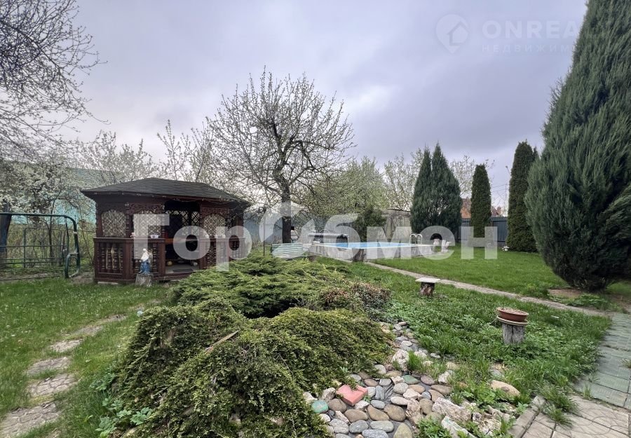 ОБ УЧАСТКЕ: ровный ухоженный участок, со всеми удобствами - есть барбекю, беседка, большой уличный БАССЕЙН (бетонная чаша с заглублением в грунт, фильтр), освещение, декоративный пруд с фонтаном. На участке много взрослых деревьев - декоративных и плодовых (туи, яблони, вишня, малина и смородина).