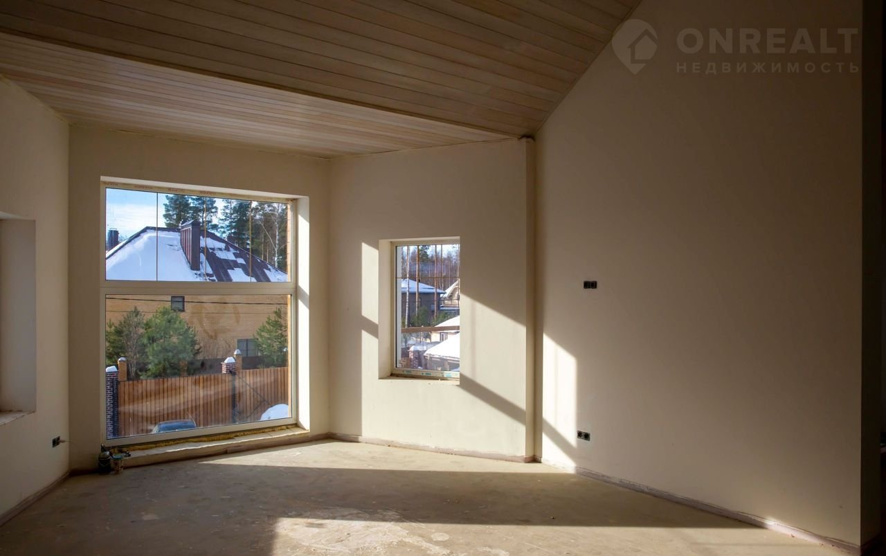 Площадь дома по документам 289,7м2. 6 комнат (4 просторные спальни, кабинет, кухня-гостиная площадью около 60м2, входная группа с гардеробной, холл, котельная, 1 санузел на первом этаже, 1 санузел - на втором), потолки второго этажа закрыты планкеном из лиственницы. Высота потолков первого этажа 3,42м, второго - варьируется от 3,54 до 5,13м.