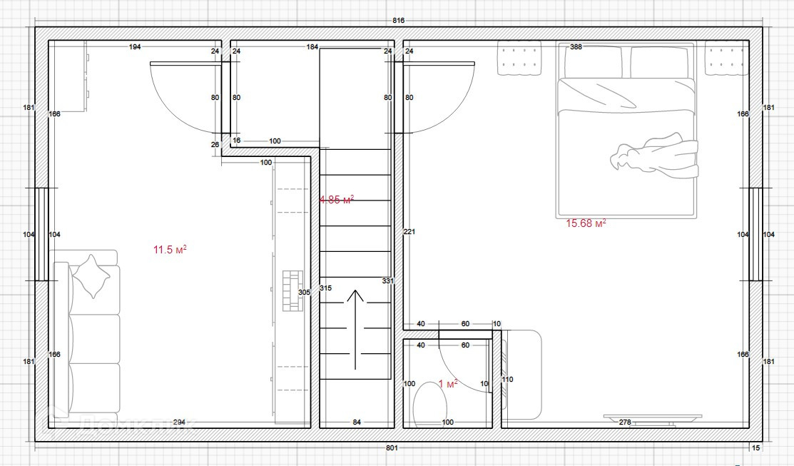 Второй этаж: комната со своим сан/узлом 15,68кв.м. и комната 11,5кв.м