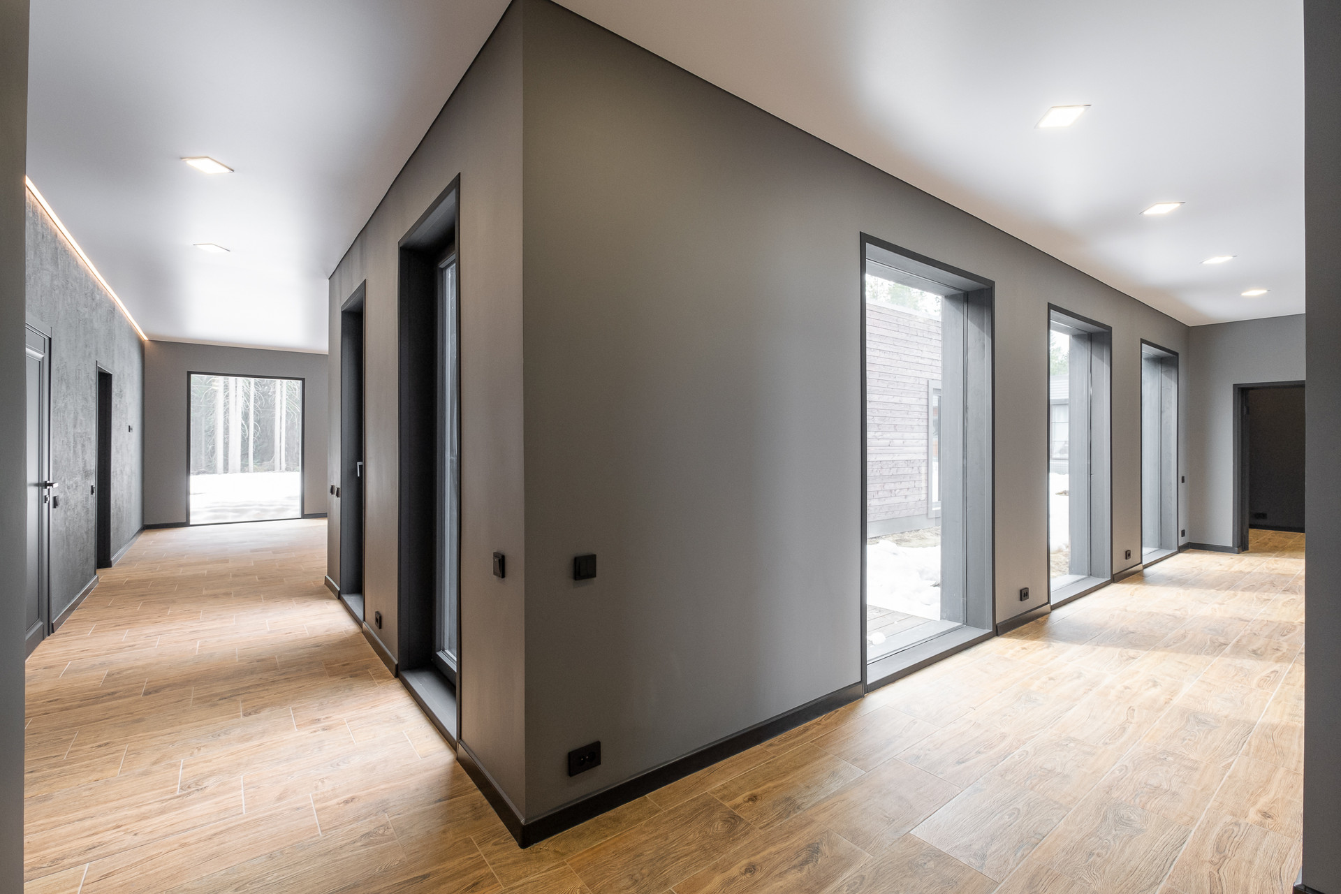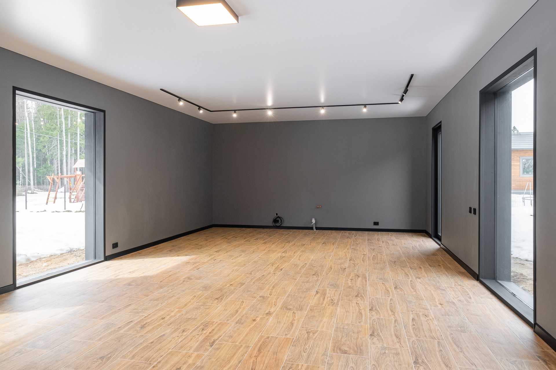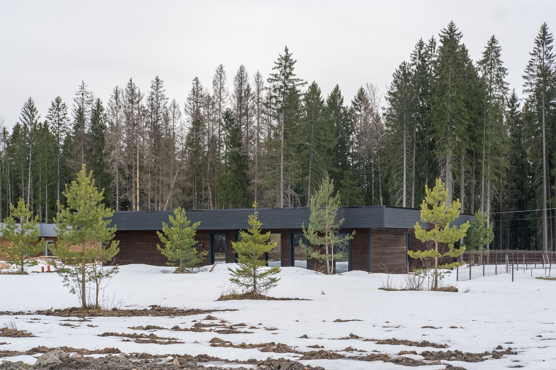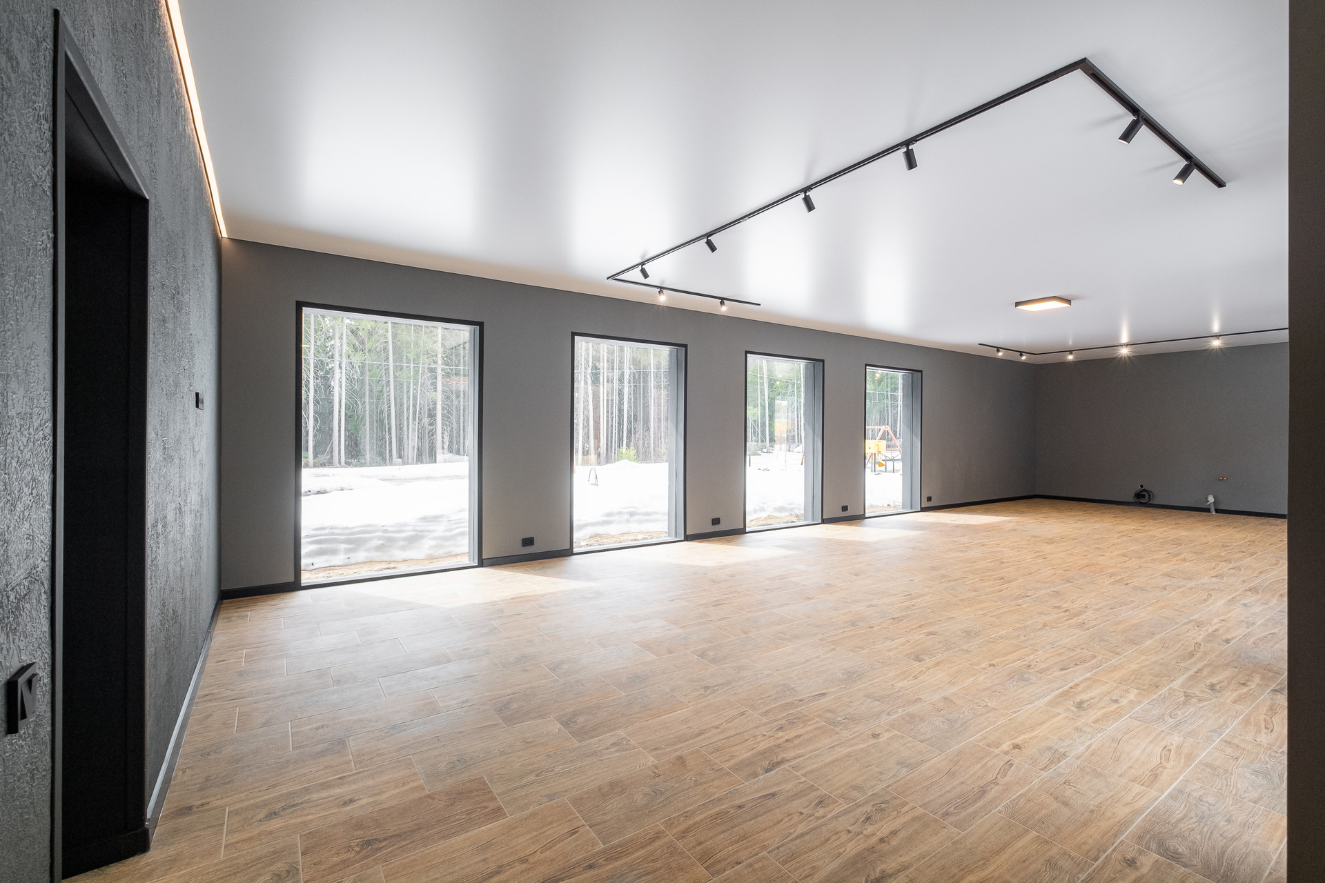 Во всех окнах в пол красивый вид из окна на лес, который так и останется красивым, так как дальше застройки уже не будет.
