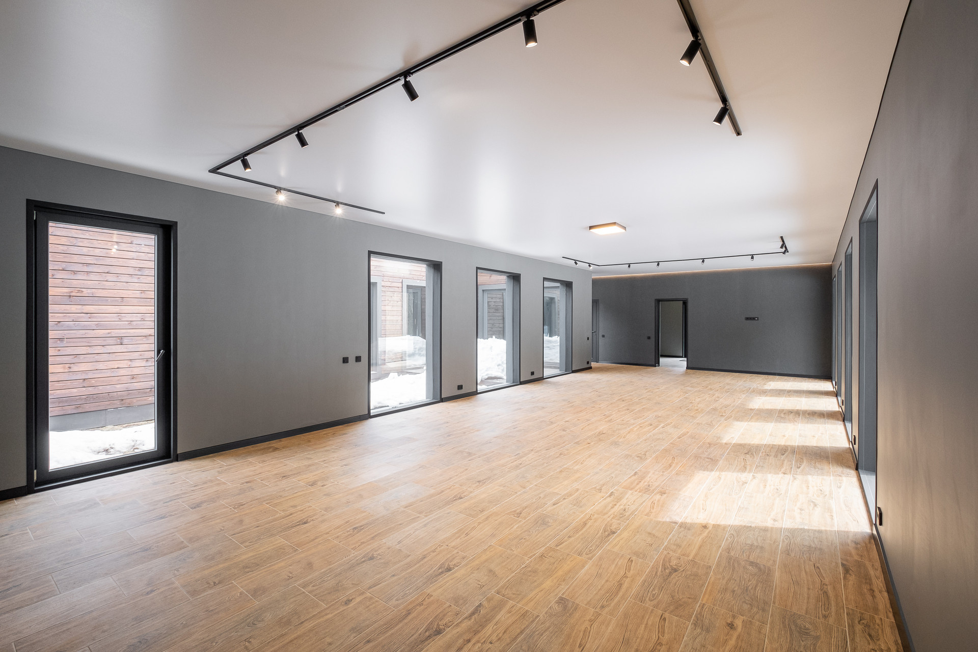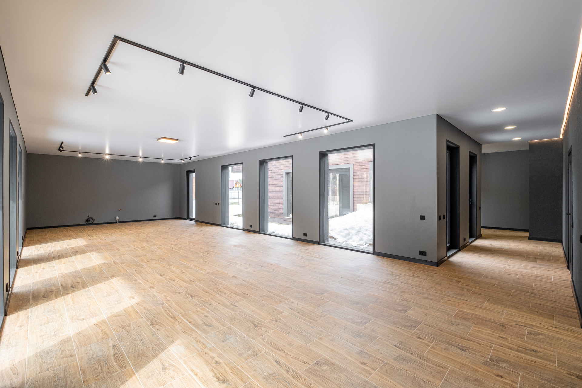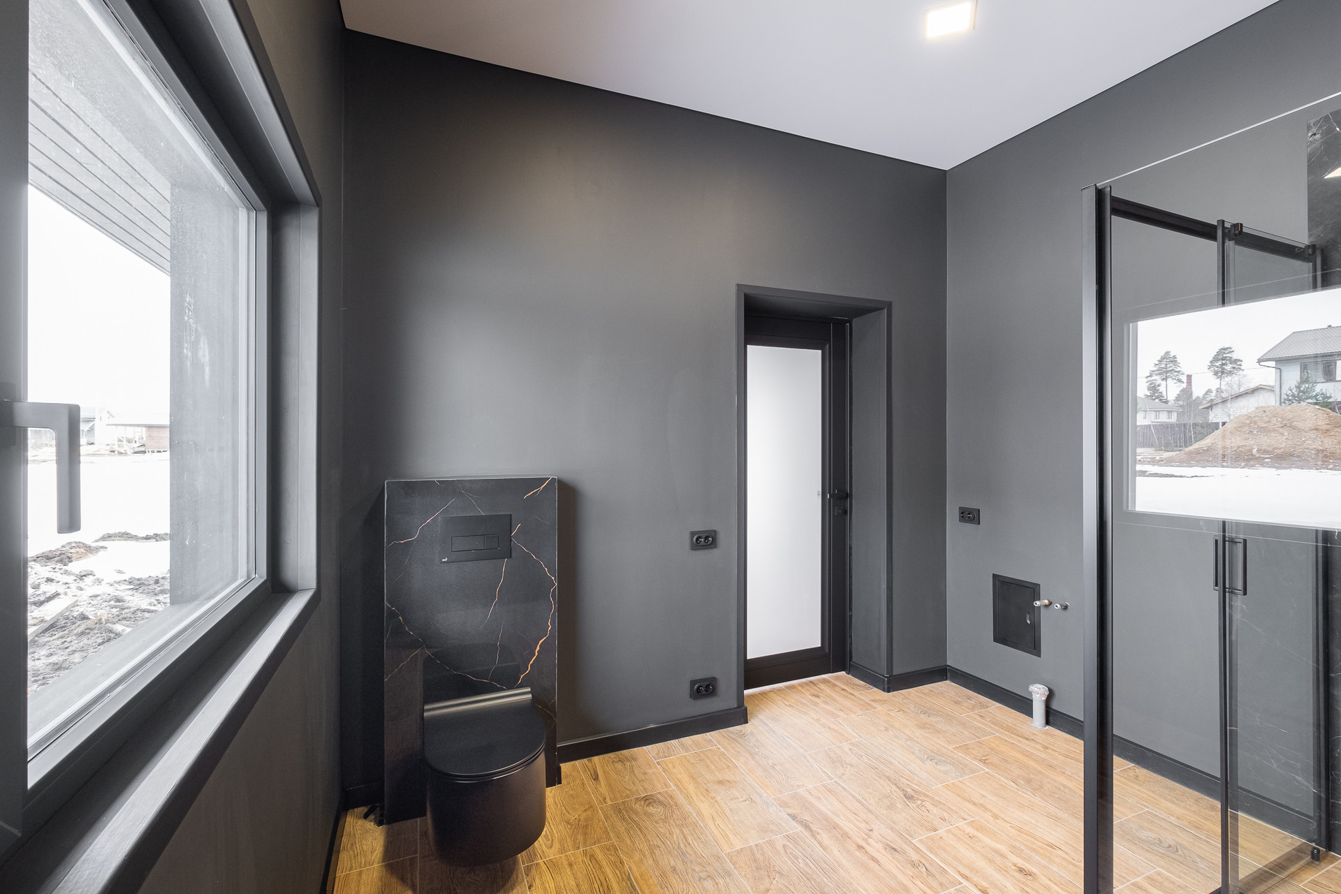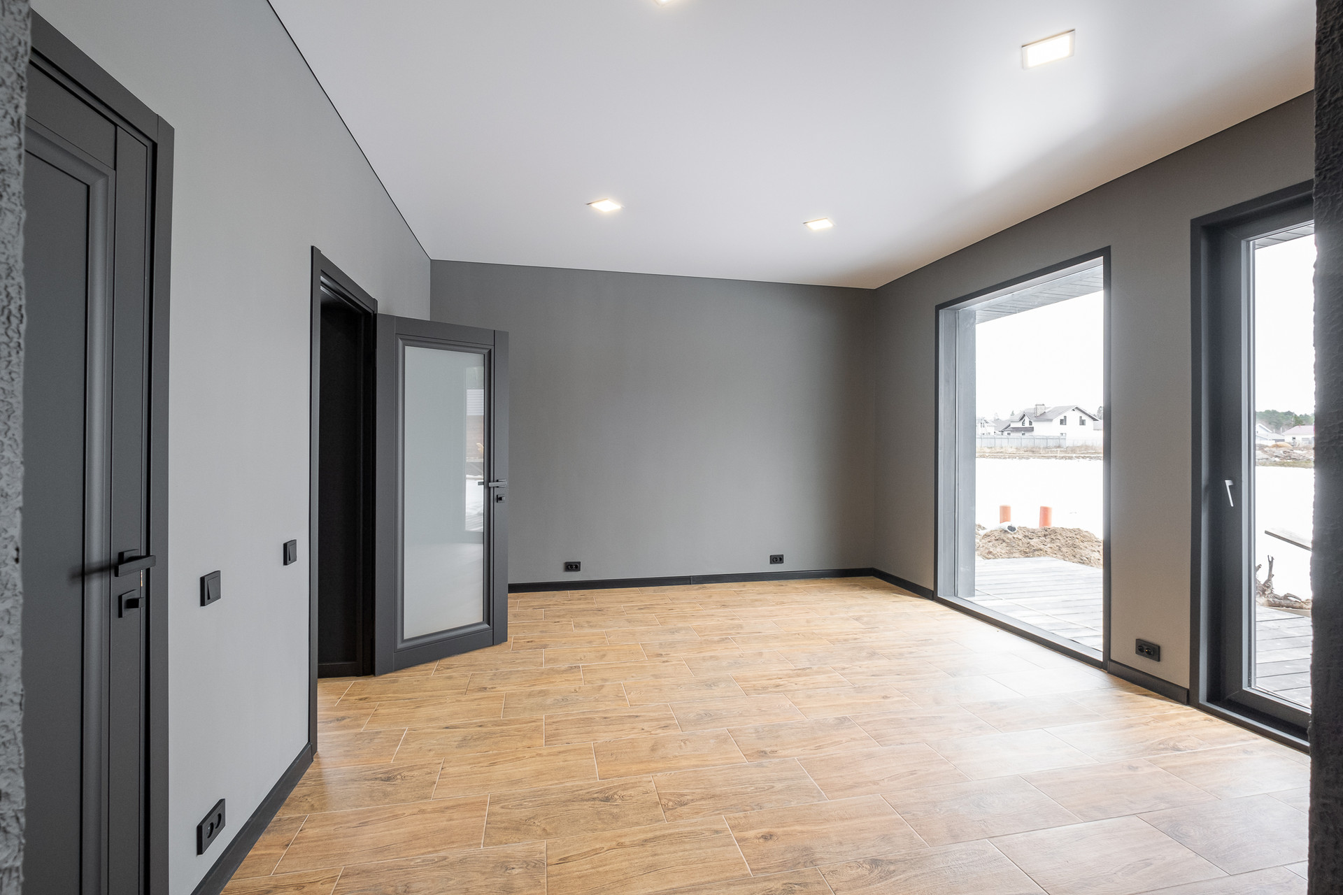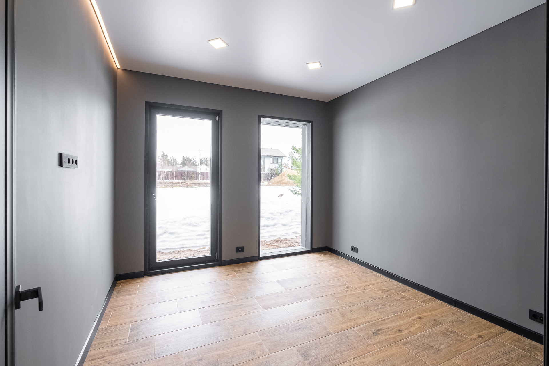 Во всех окнах в пол красивый вид из окна на лес, который так и останется красивым, так как дальше застройки уже не будет.