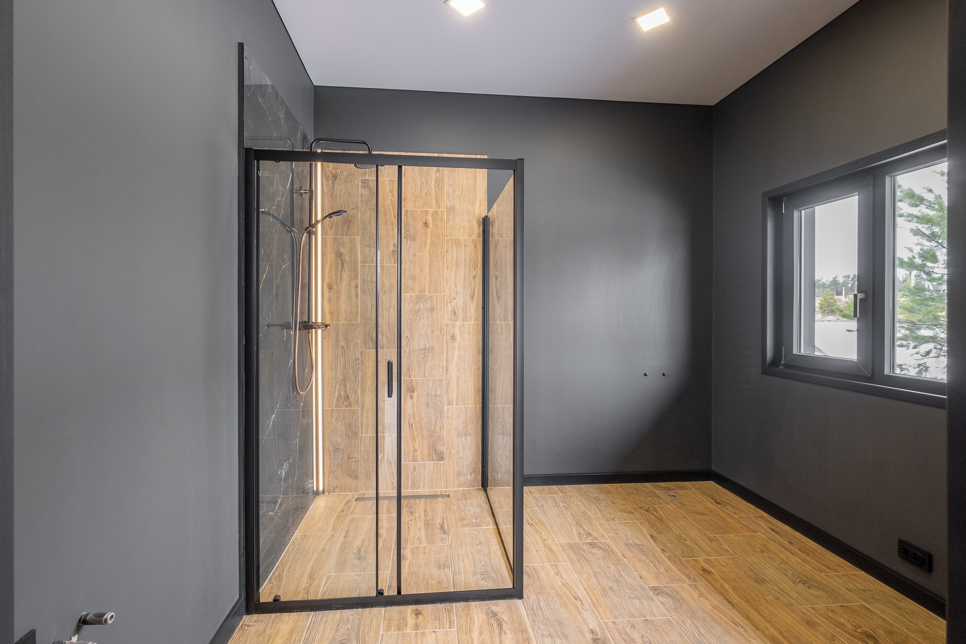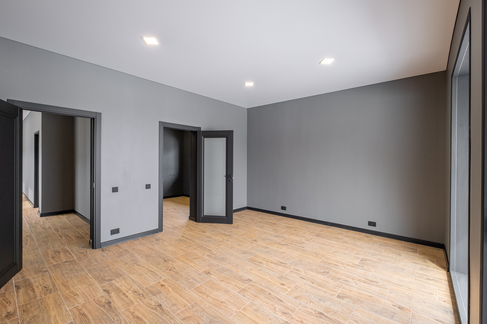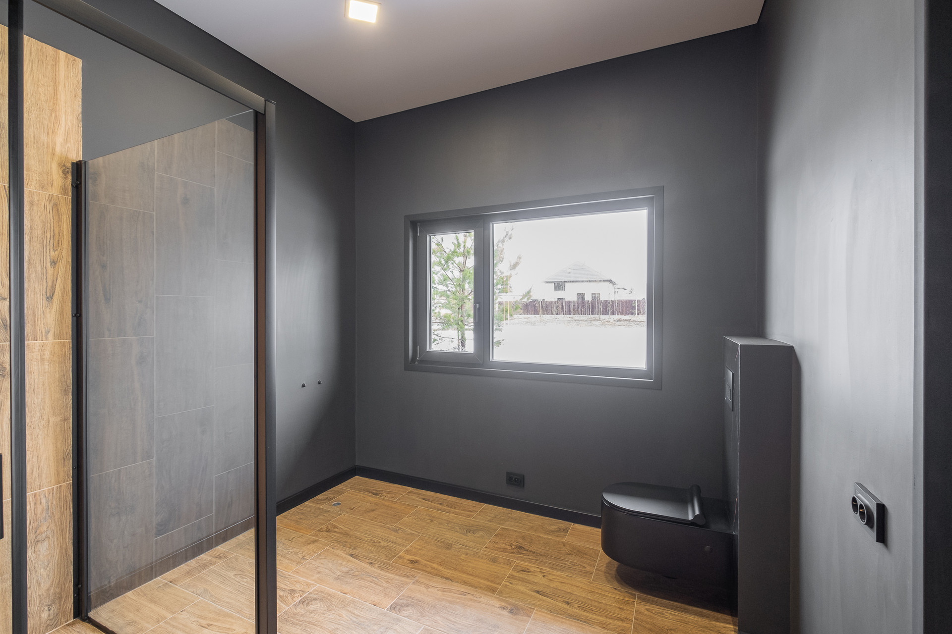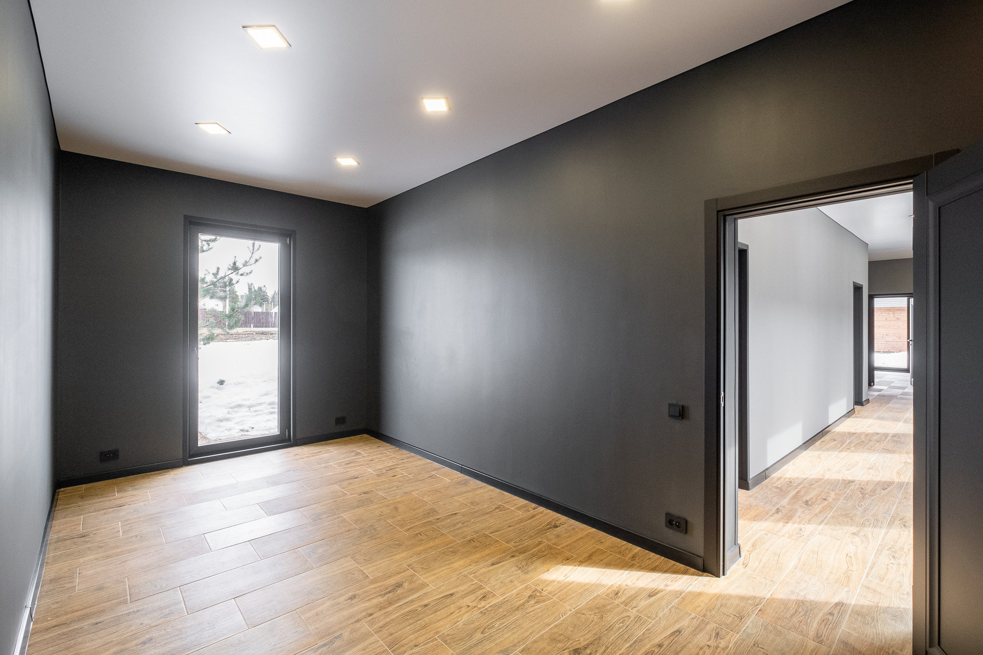 Во всех окнах в пол красивый вид из окна на лес, который так и останется красивым, так как дальше застройки уже не будет.