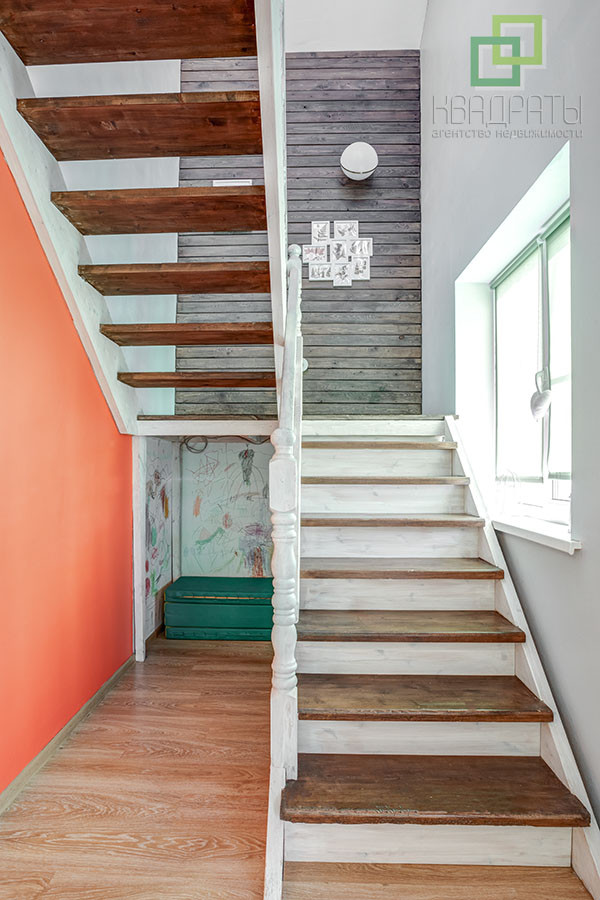 На второй этаж ведет крепкая деревянная лестница.