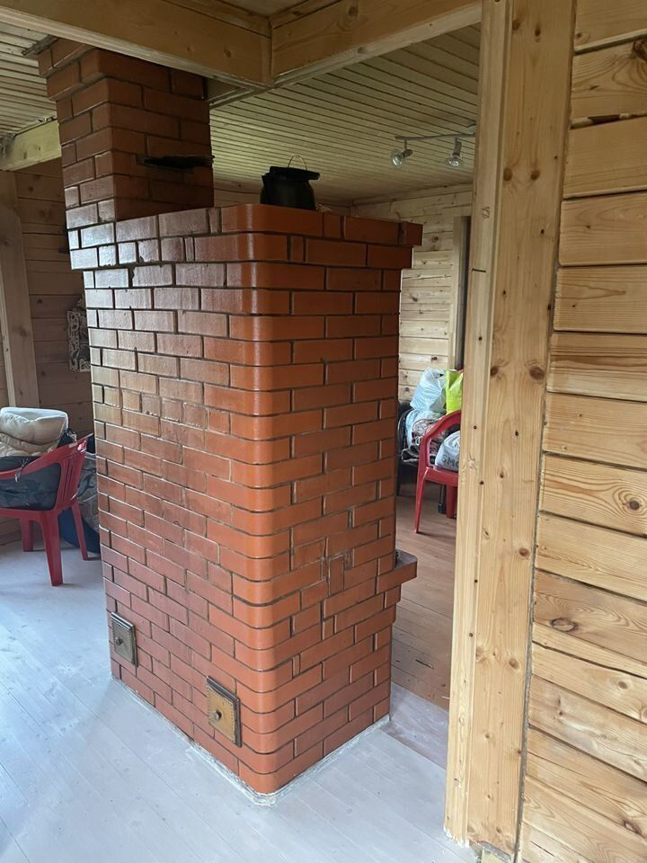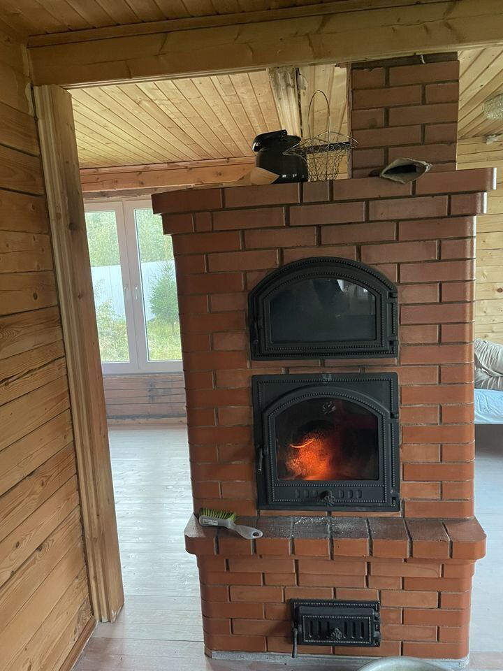 Две комнаты, печь с панорамными стеклом и духовкой.