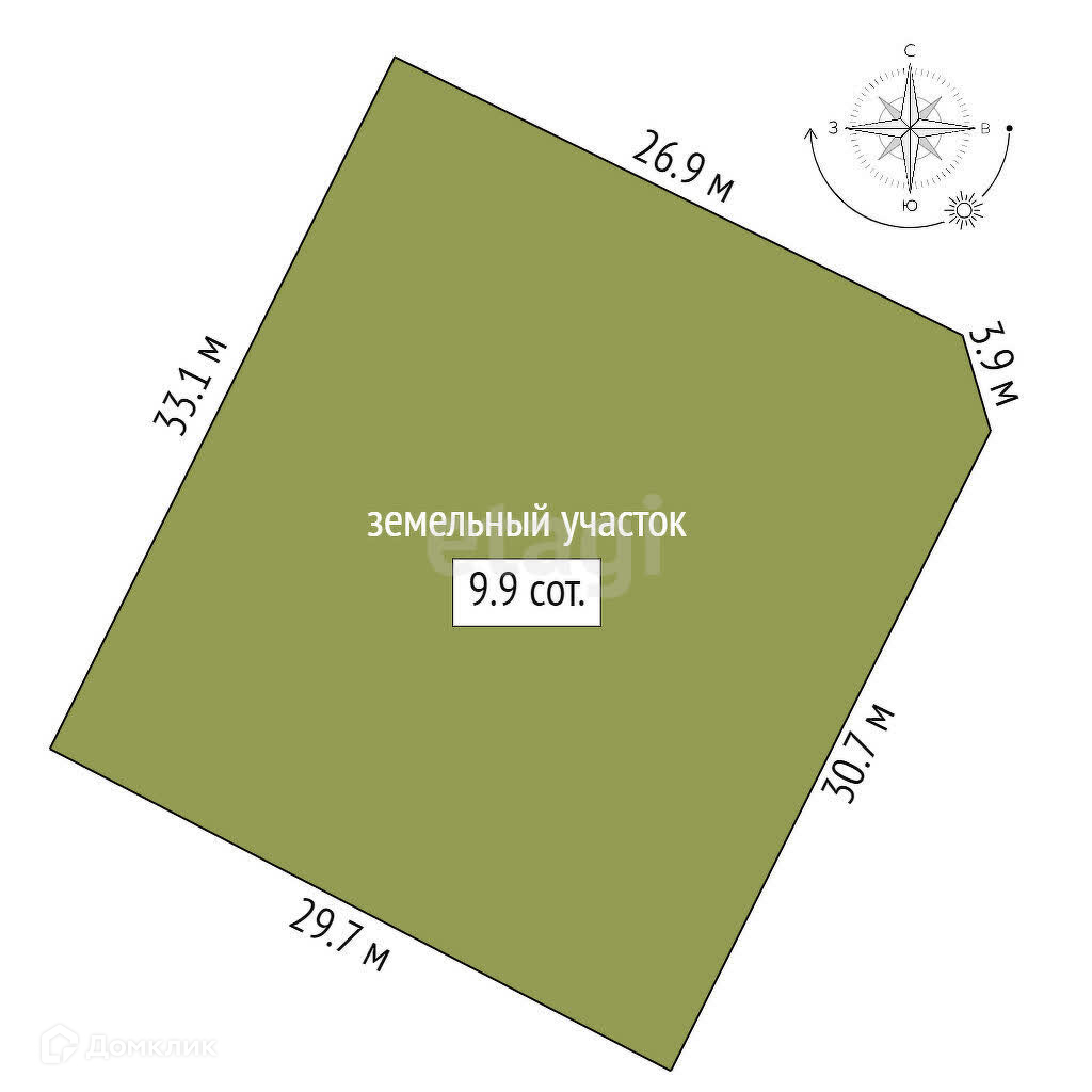 Площадь участка 9.95 сот.