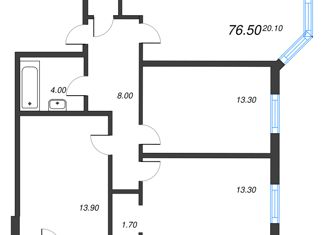 Общая площадь: 76.5 м2
