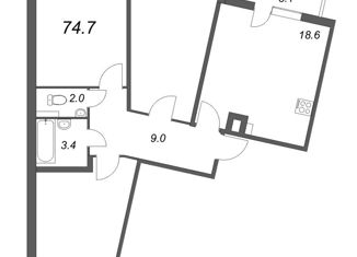 Общая площадь: 74.7 м2