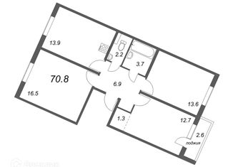 Общая площадь: 70.8 м2