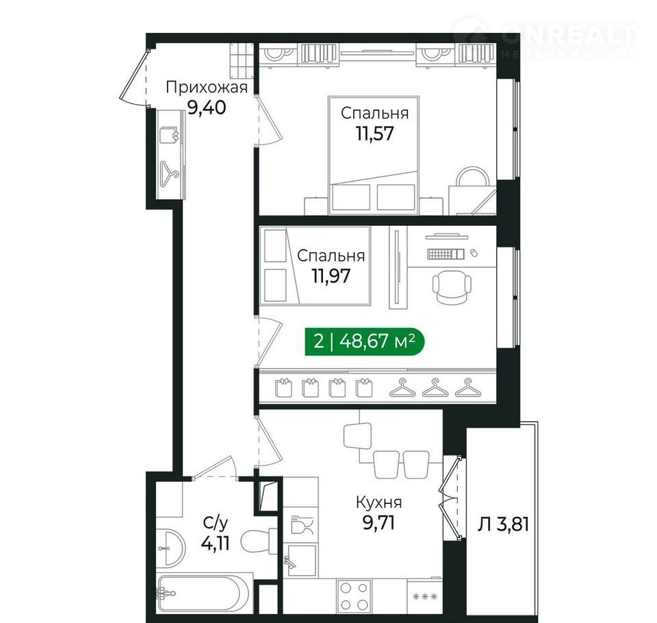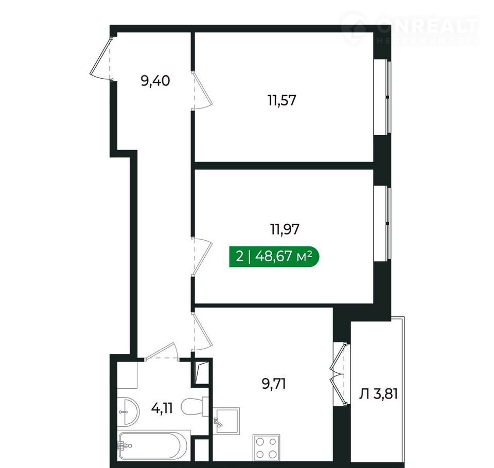 Общая площадь 48.7 м2