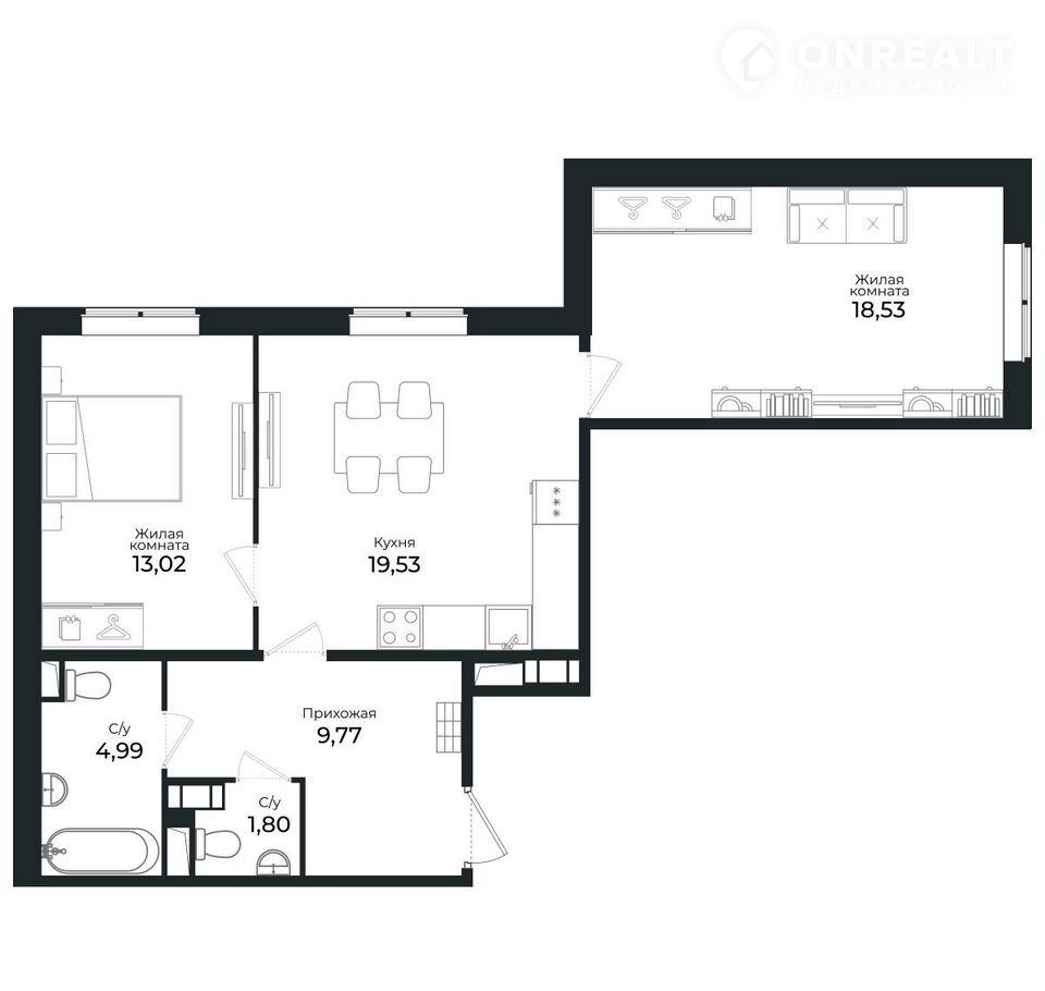 Площадь кухни 19.5 м2