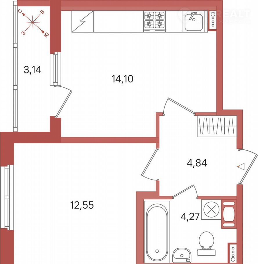 Площадь кухни 14.1 м2
