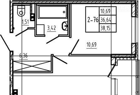 Общая площадь 36.4 м2