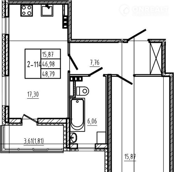Балкон, лоджия 1 лоджия