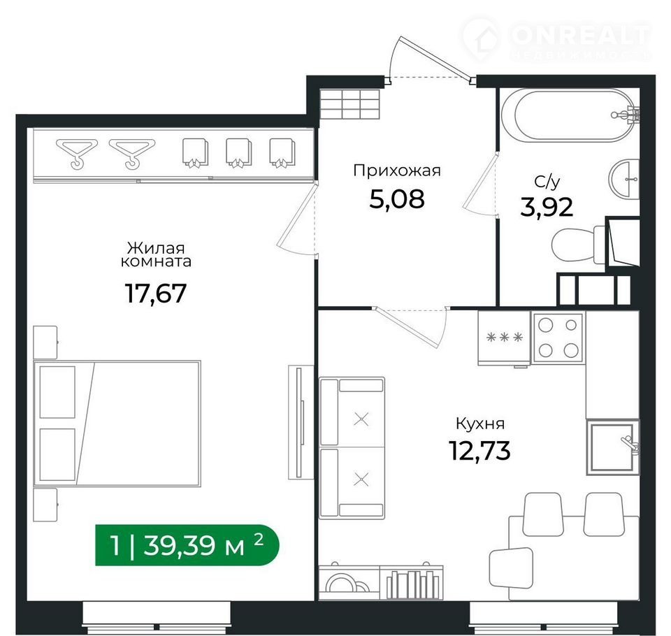 Общая площадь 38.8 м2